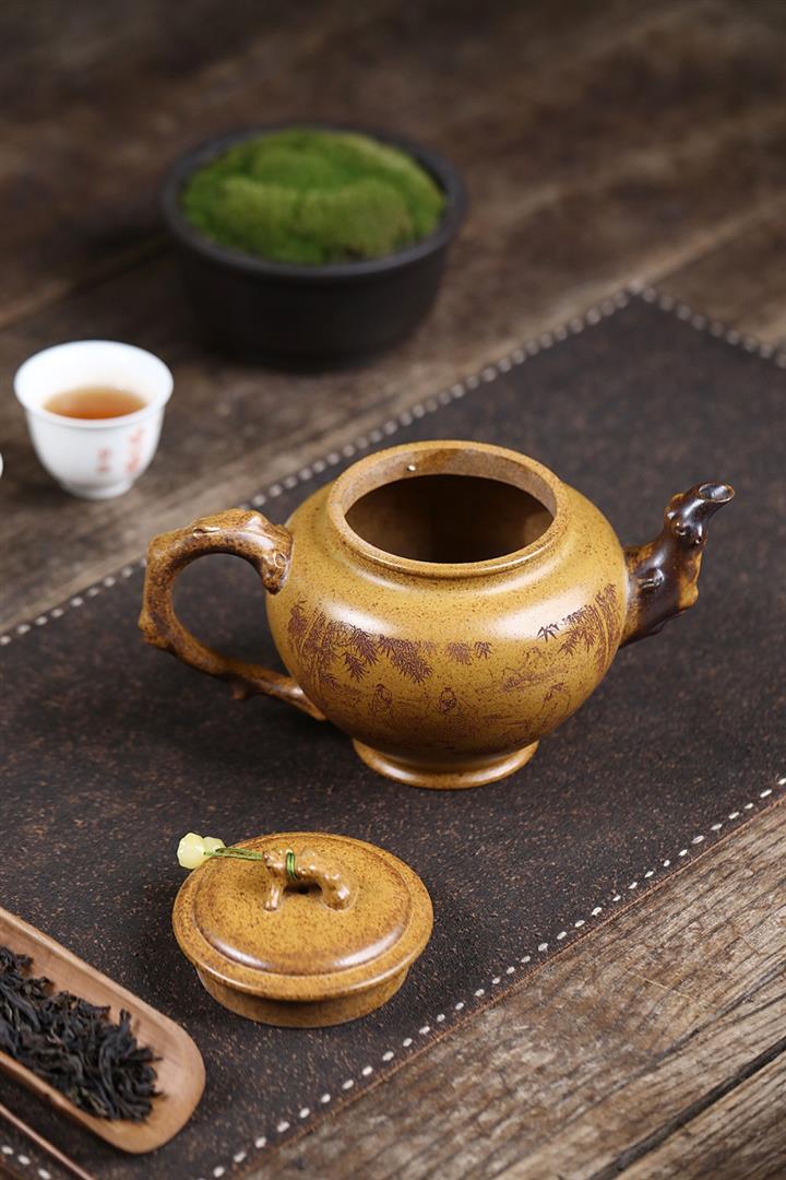 原礦龍血砂手工觀山水平茶壺POT6769