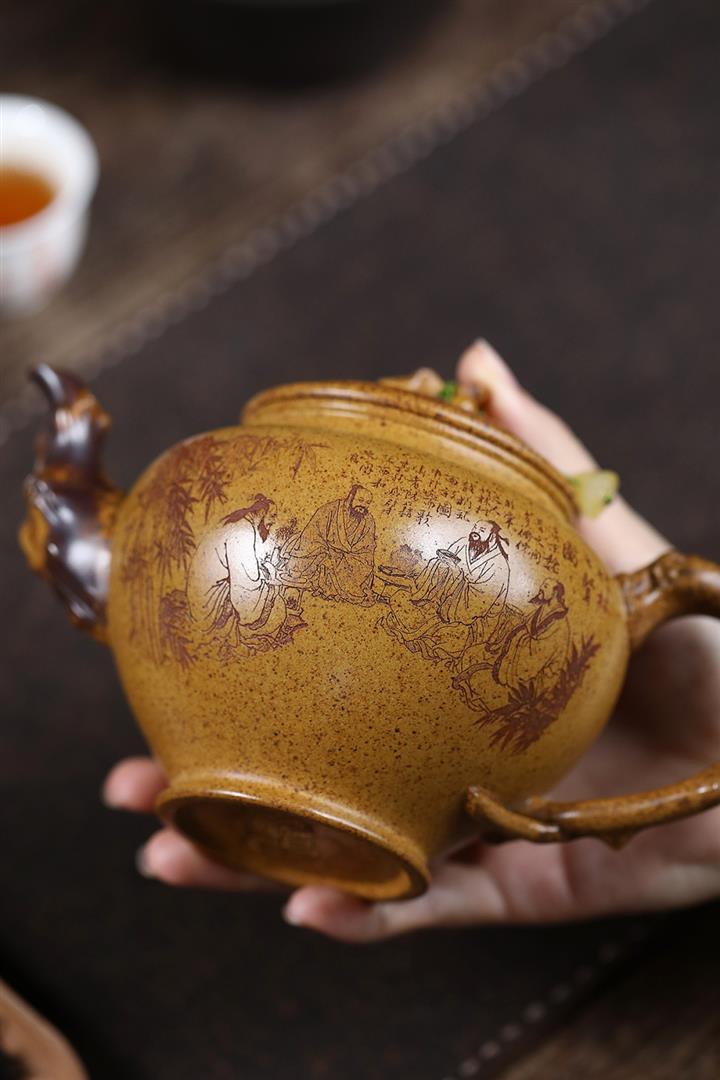 原礦龍骨金砂手工竹林七賢報春壺POT6763