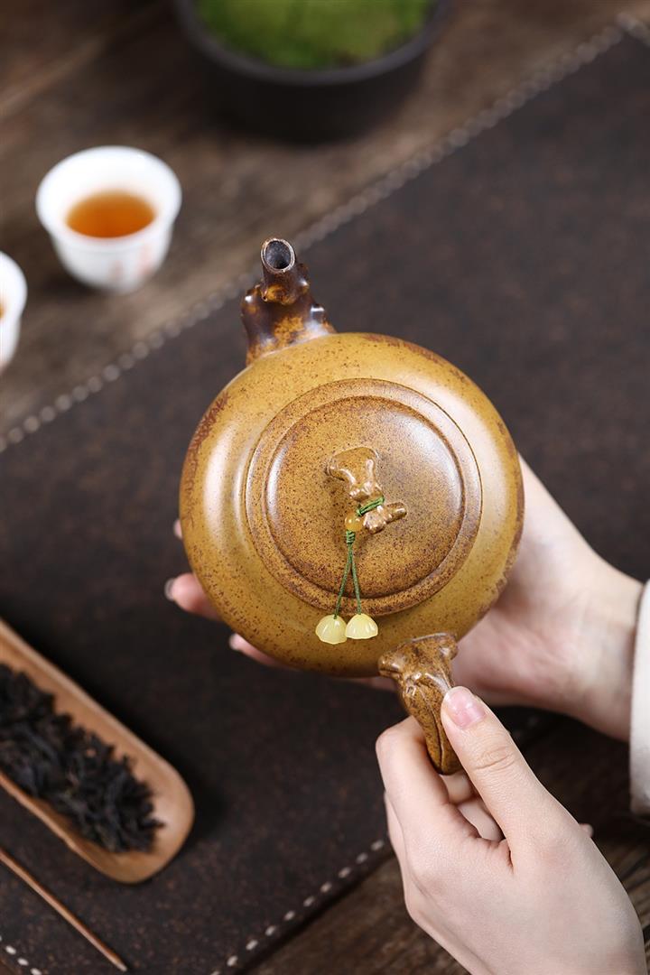 原礦鐵血紅砂手工蛇紋鎏金悟空納瓢壺POT6773