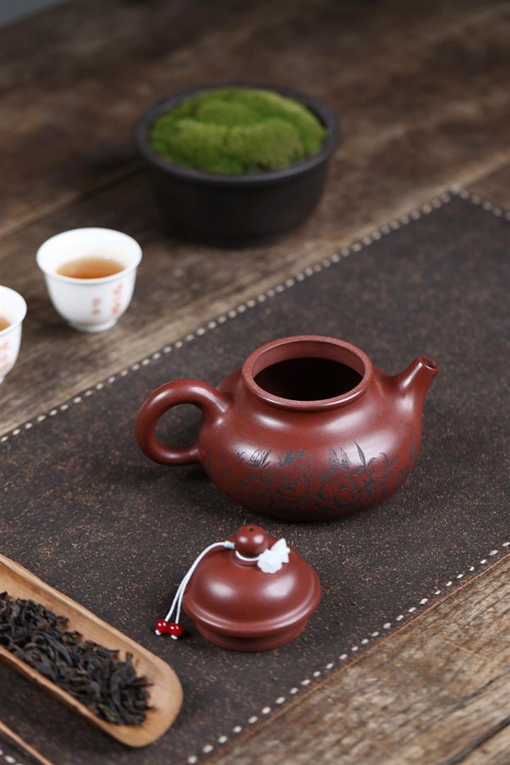 原礦大紅袍手工蓮花汲直茶壺POT6771