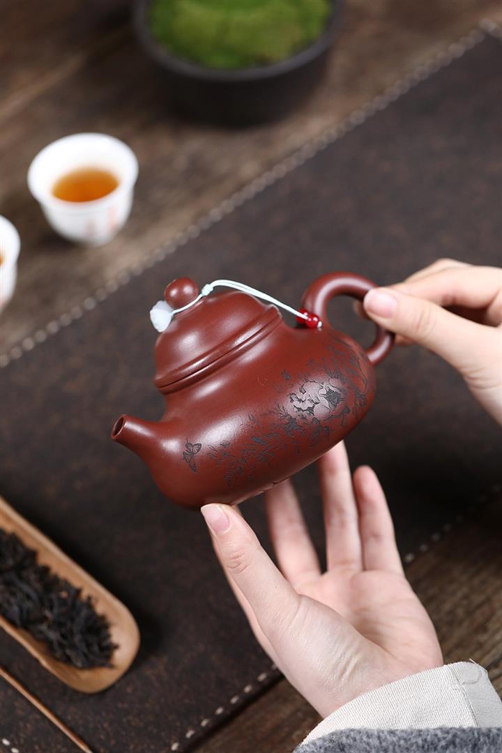 原礦龍血砂手工紅梅扁鼓茶壺POT6766