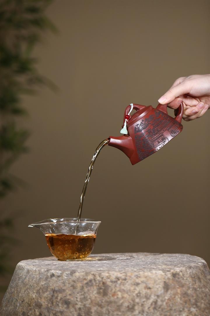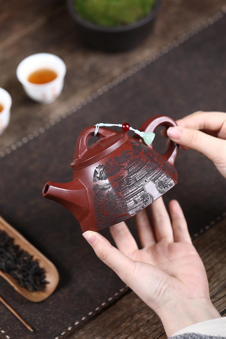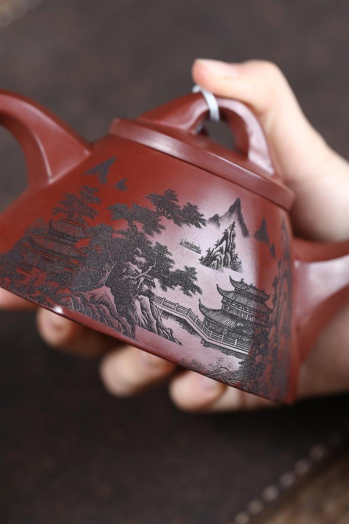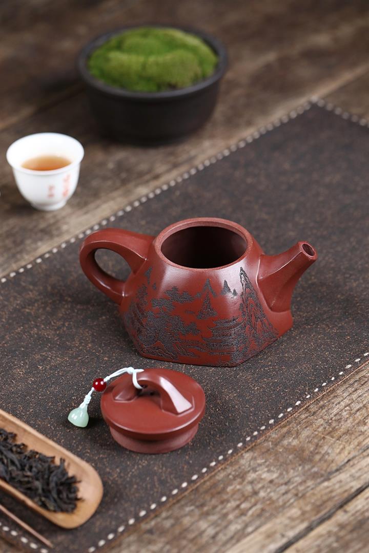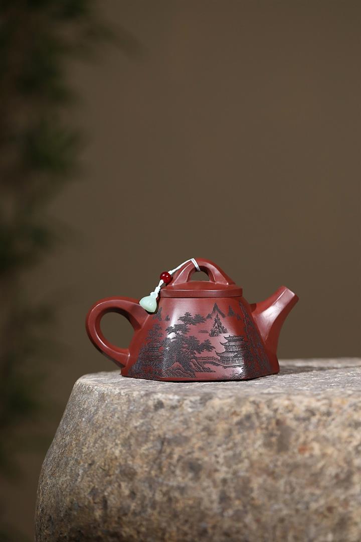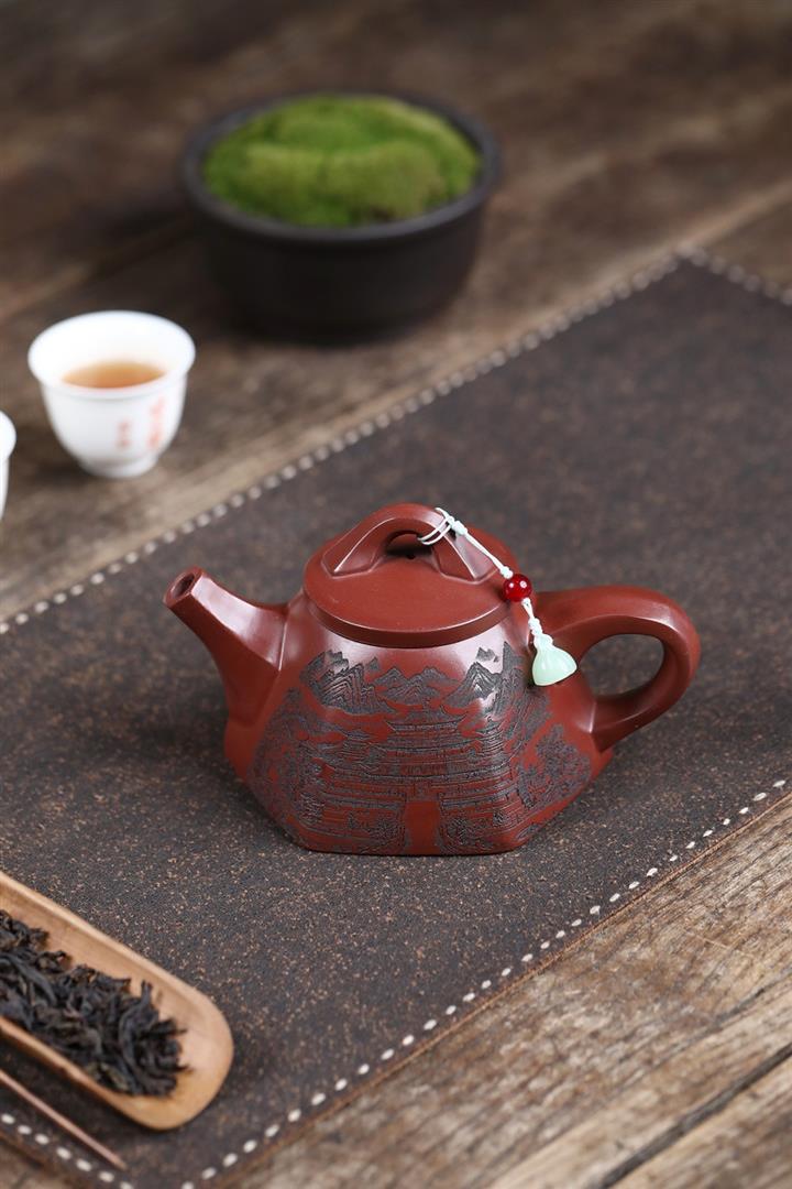 原礦龍血砂手工滿刻寶塔茶壺POT6768