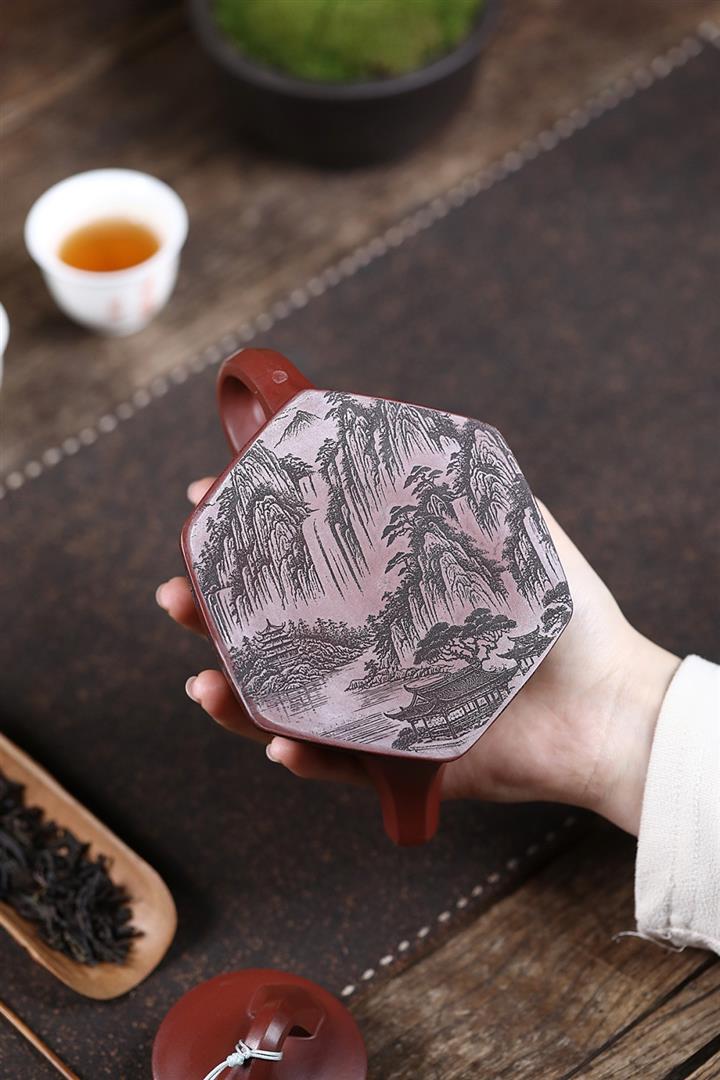 原礦大紅袍手工蓮花汲直茶壺POT6771