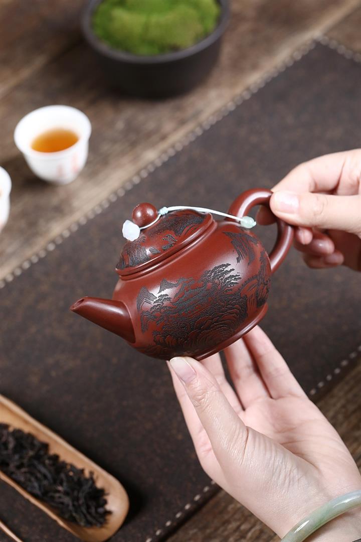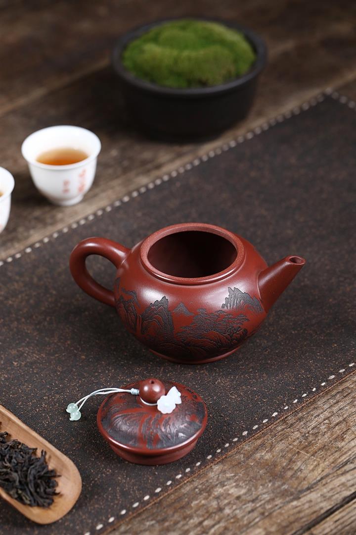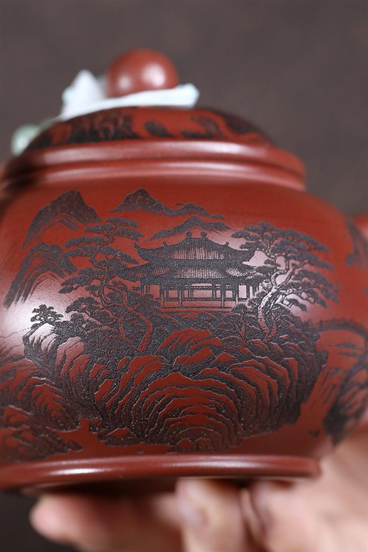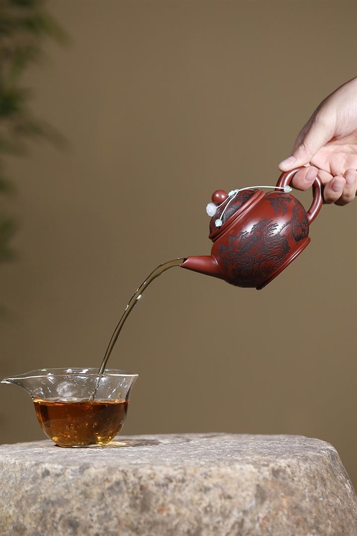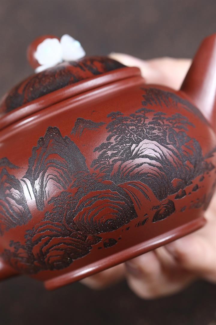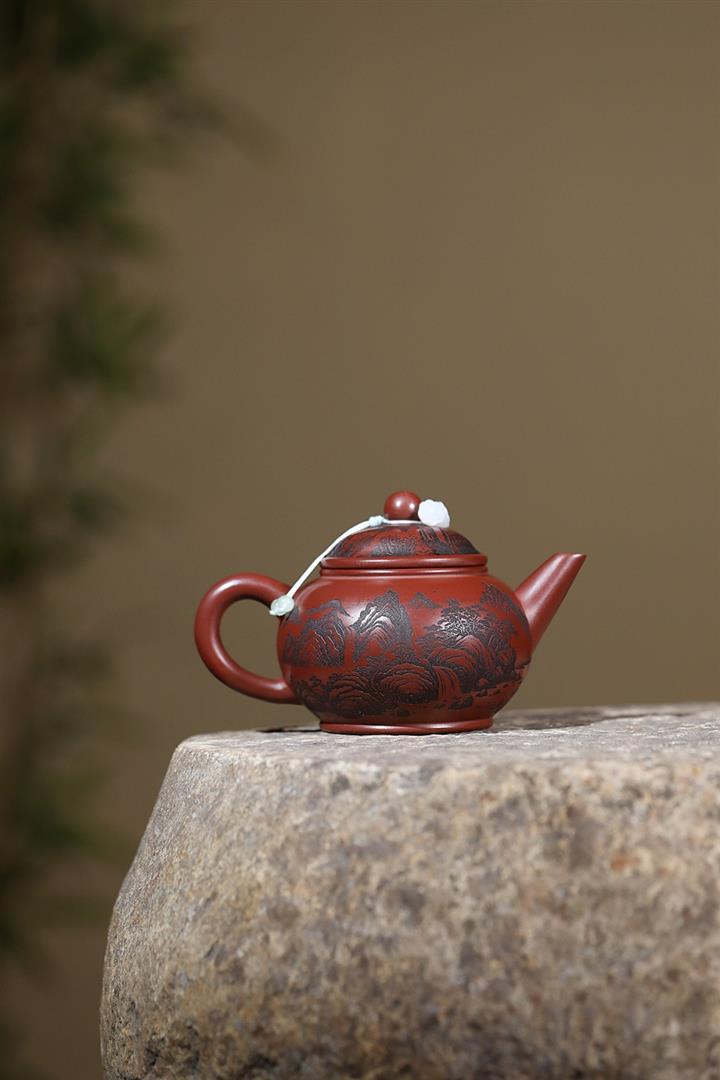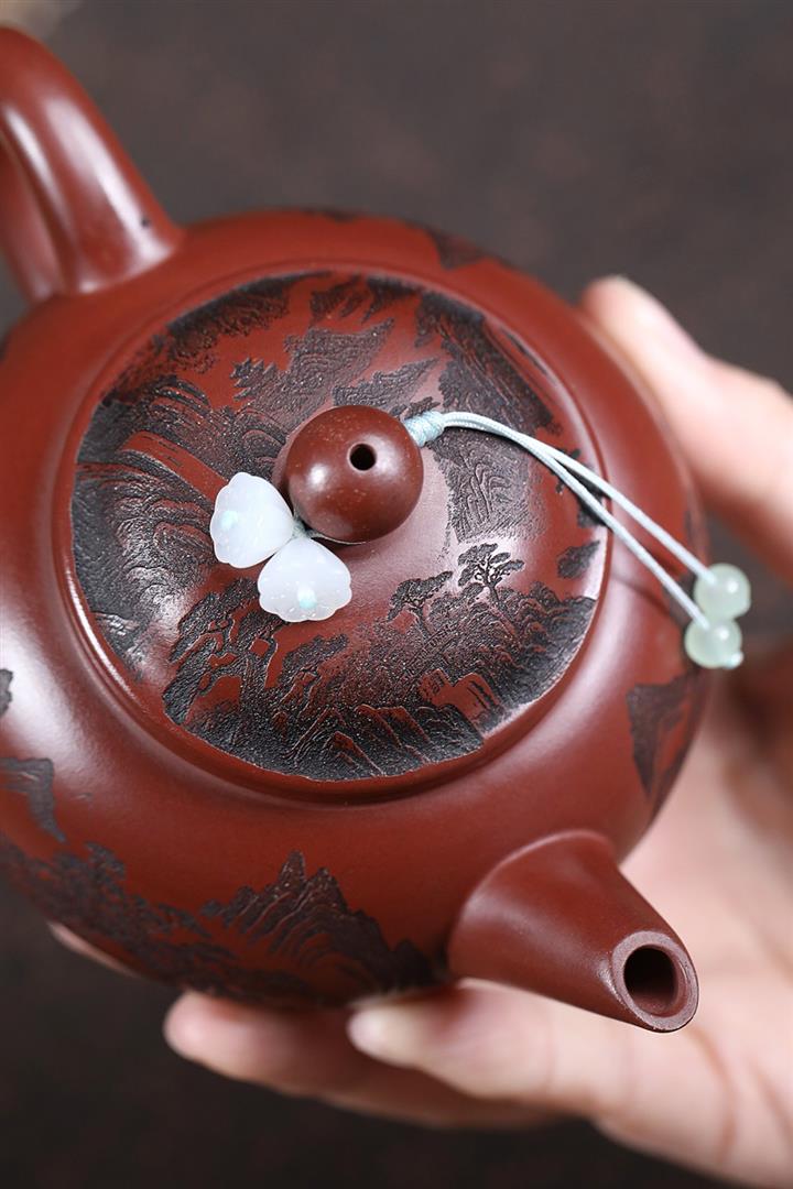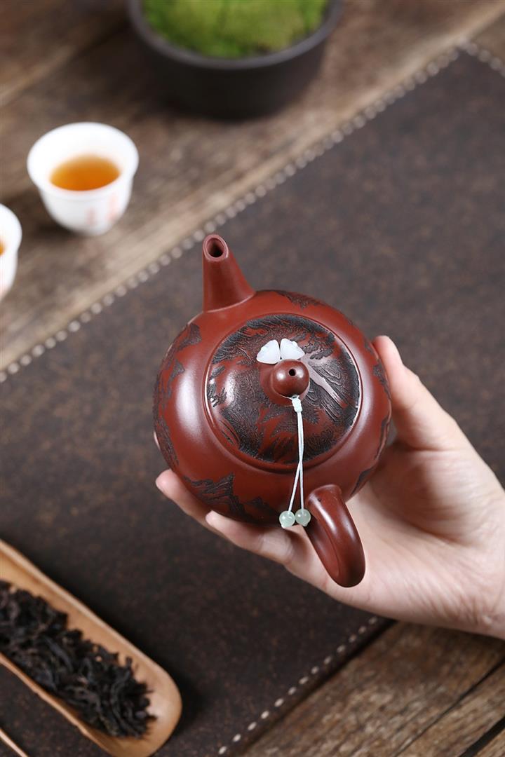 原礦大紅袍手工蓮花汲直茶壺POT6771