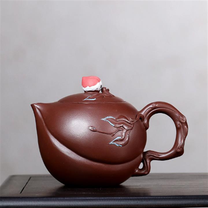 原礦紫泥手工描金合菱茶壺POT6779