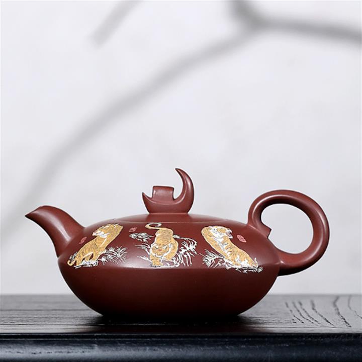 原礦紫泥手工泥繪虎嘯山河茶壺POT6785