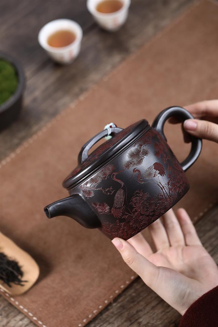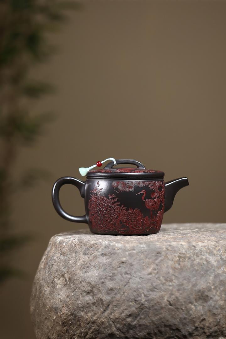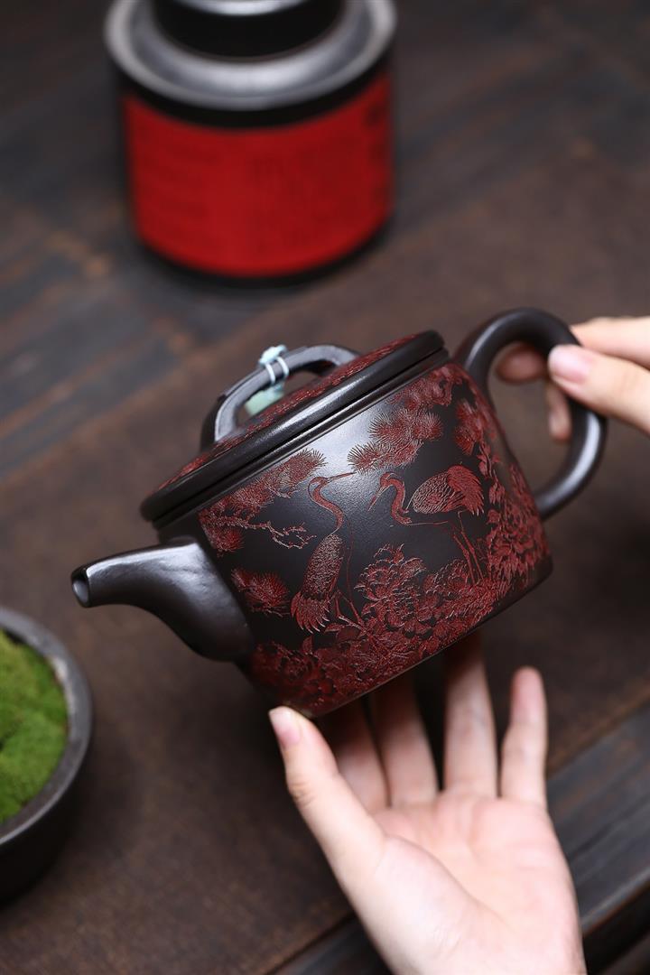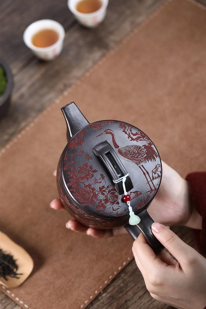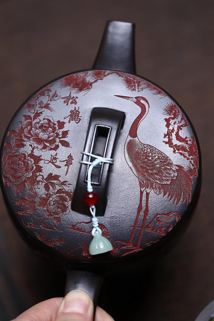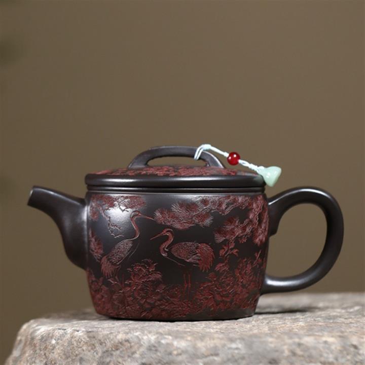 原礦石黃泥手工仙鶴延年漢瓦茶壺POT6778