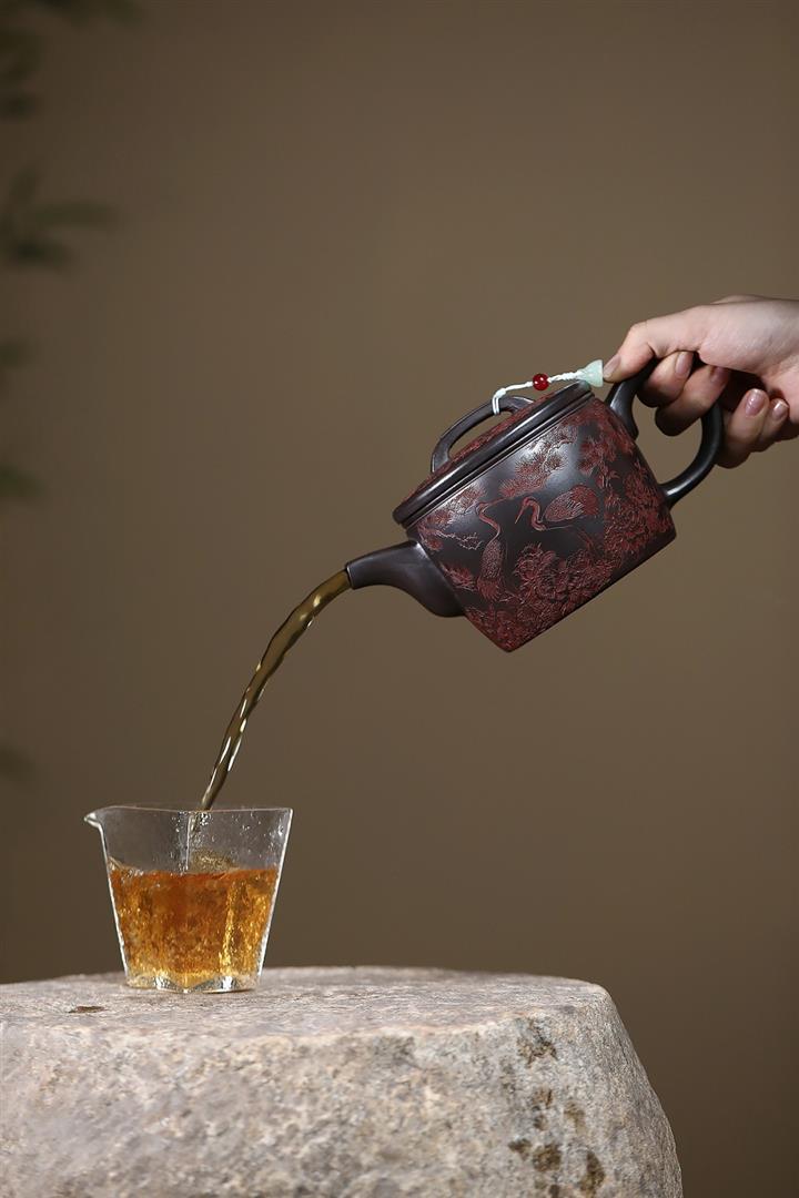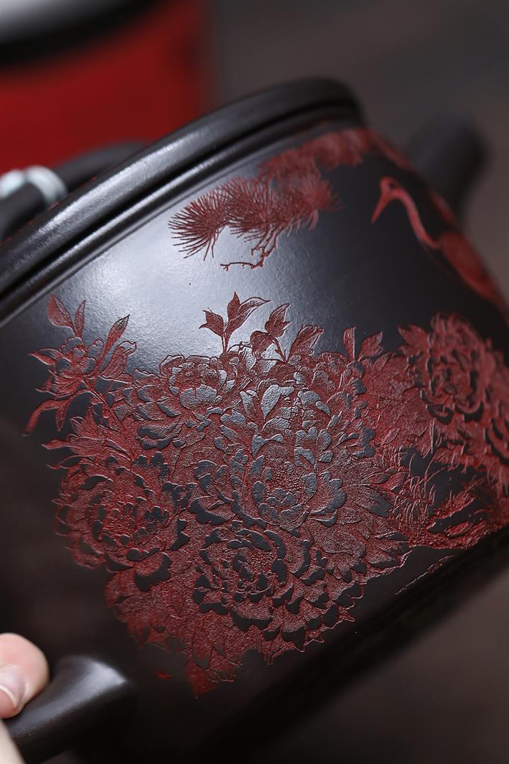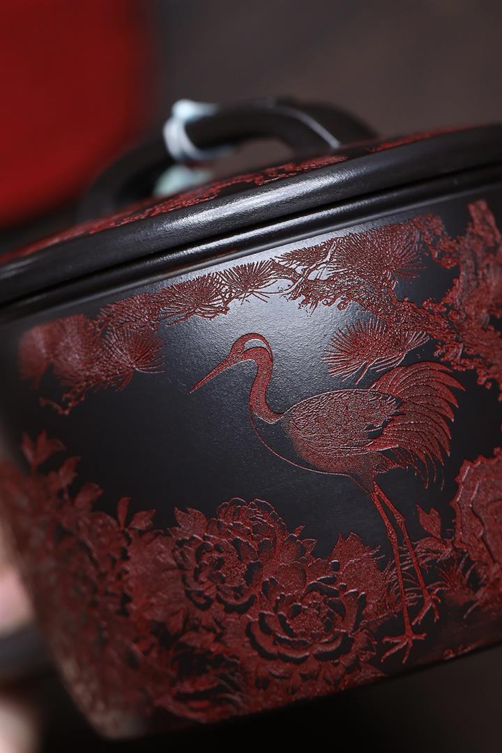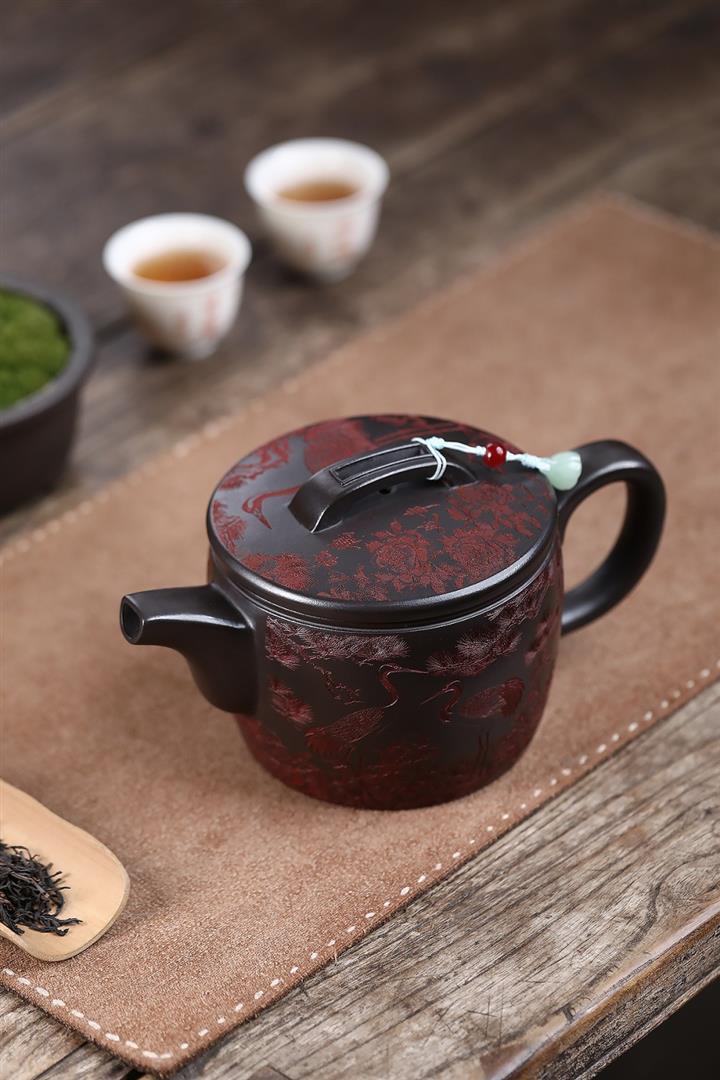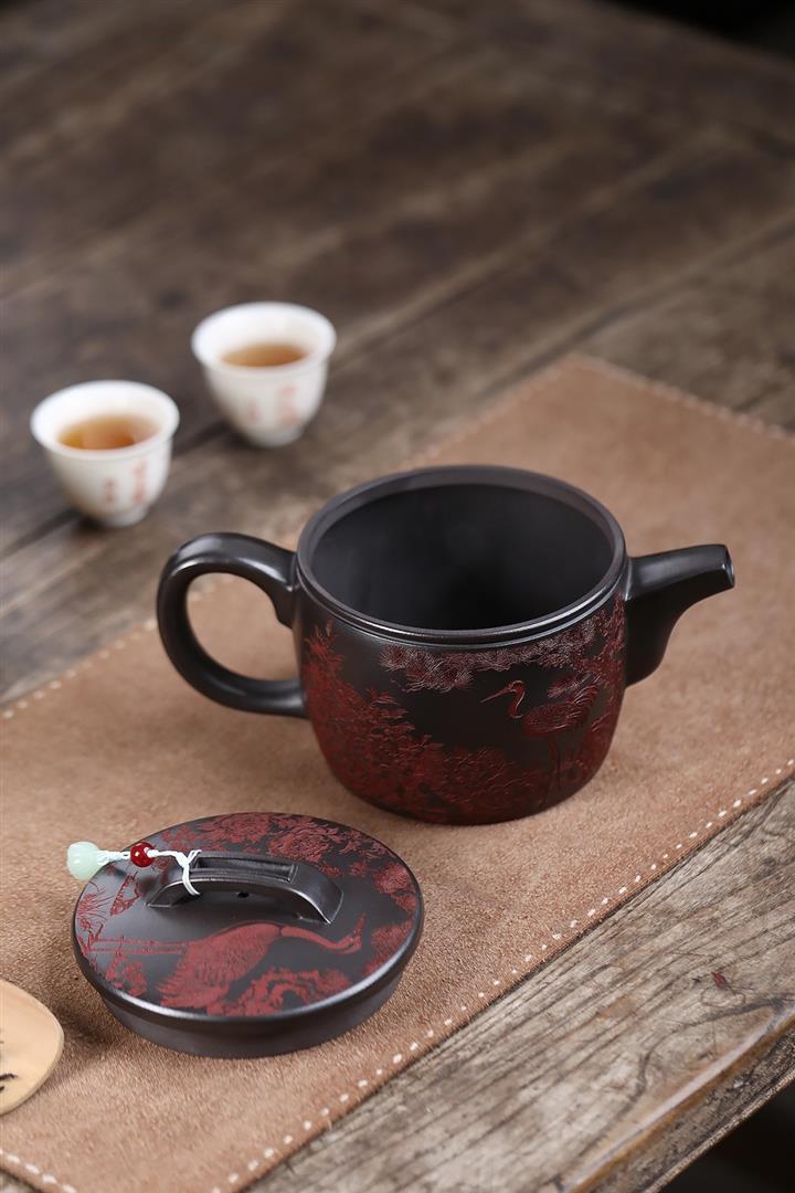 原礦石黃泥手工仙鶴延年漢瓦茶壺POT6778