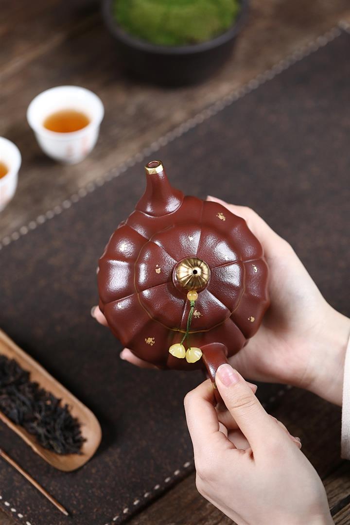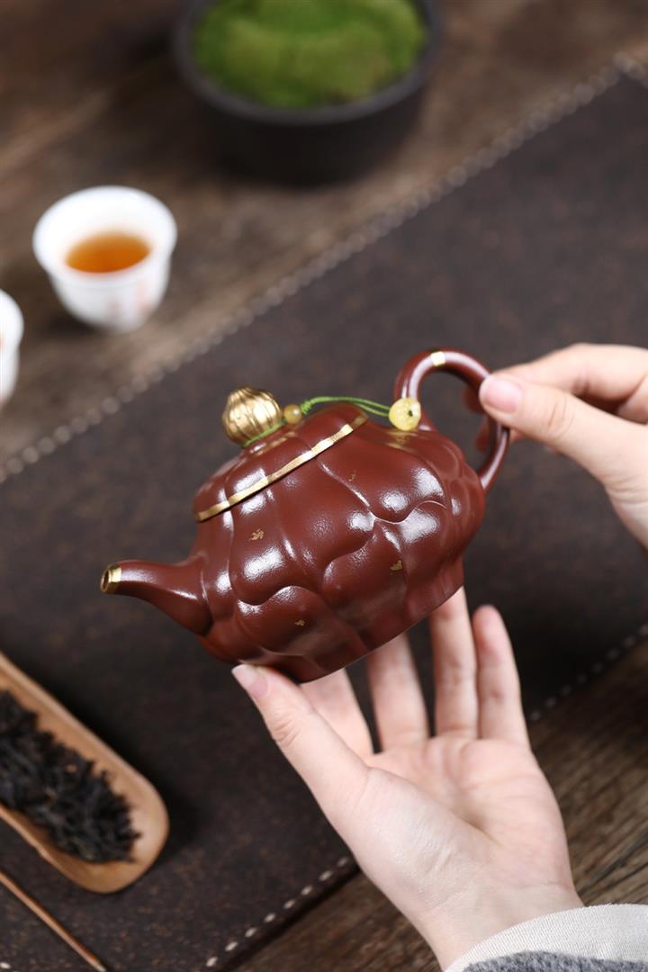 原礦黃段手工貼花葫蘆茶壺POT6783