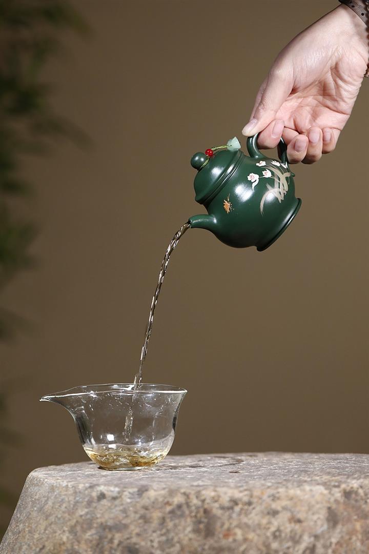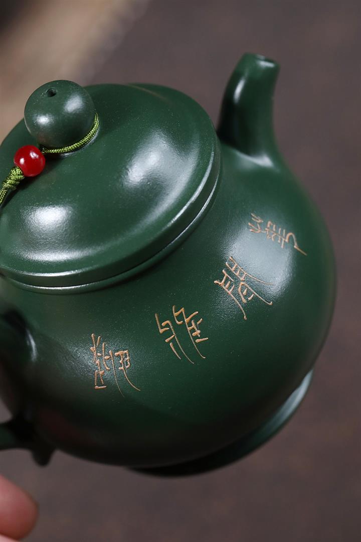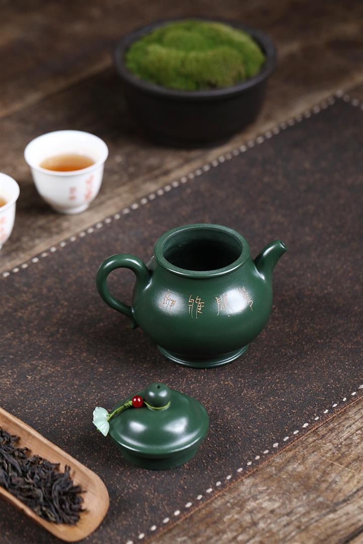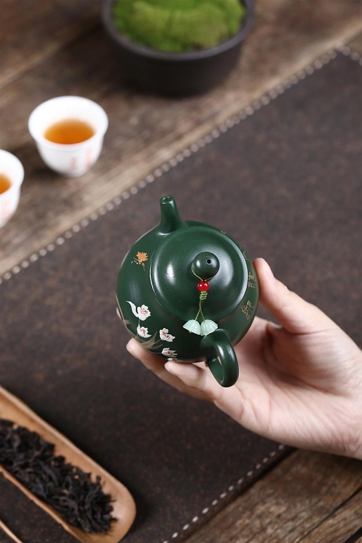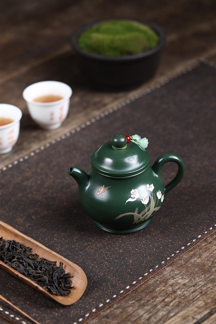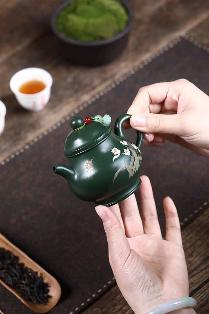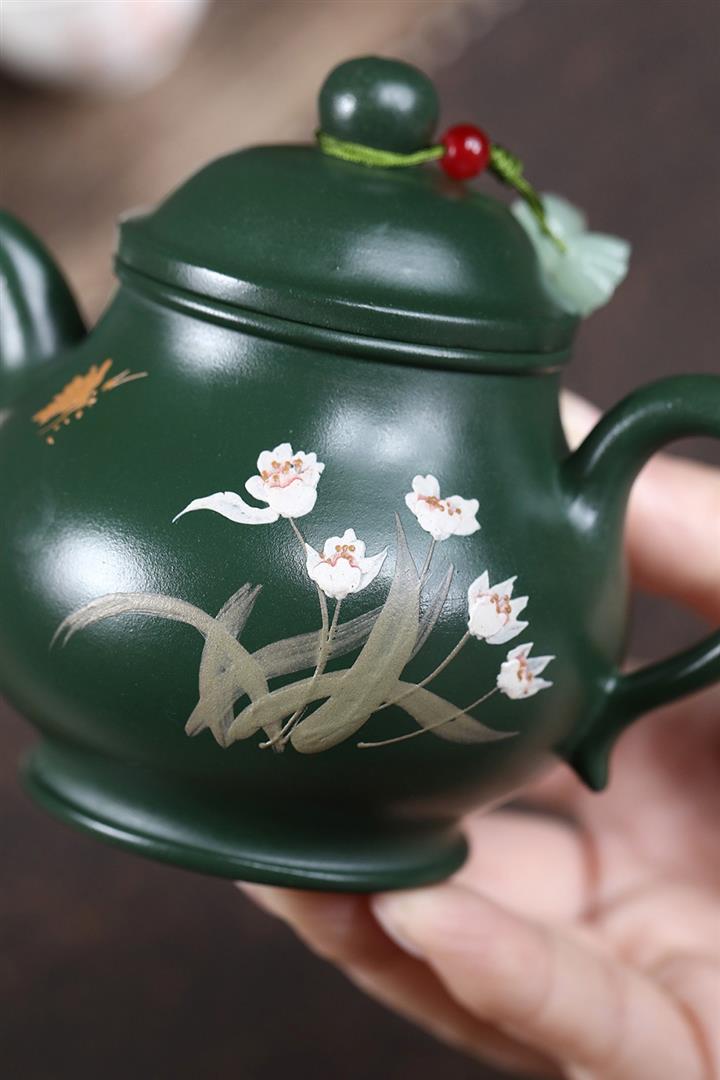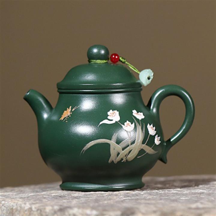 原礦綠泥手工蘭花高潘茶壺POT6780