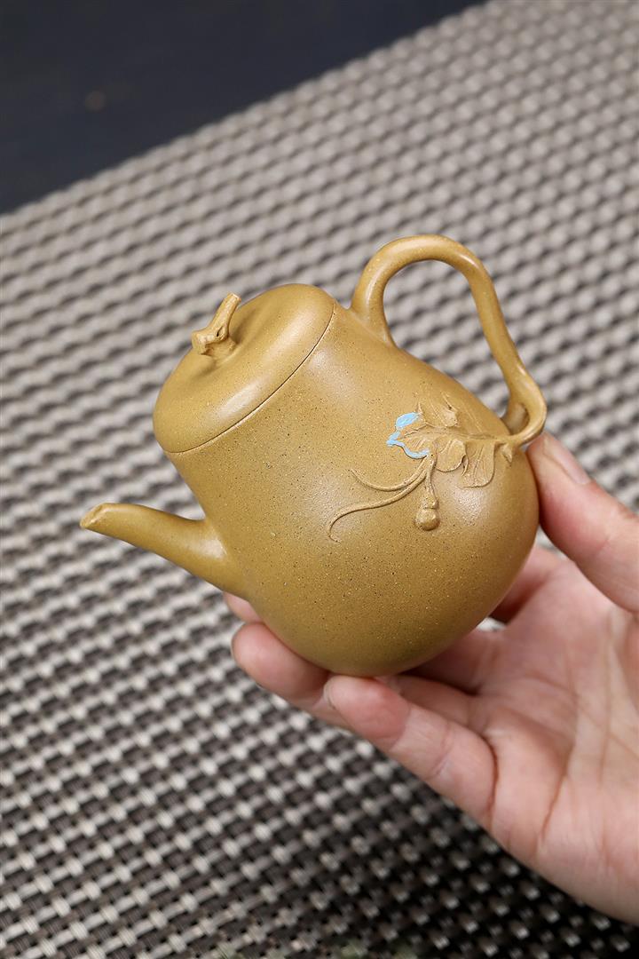 原礦黃段手工貼花葫蘆茶壺POT6783