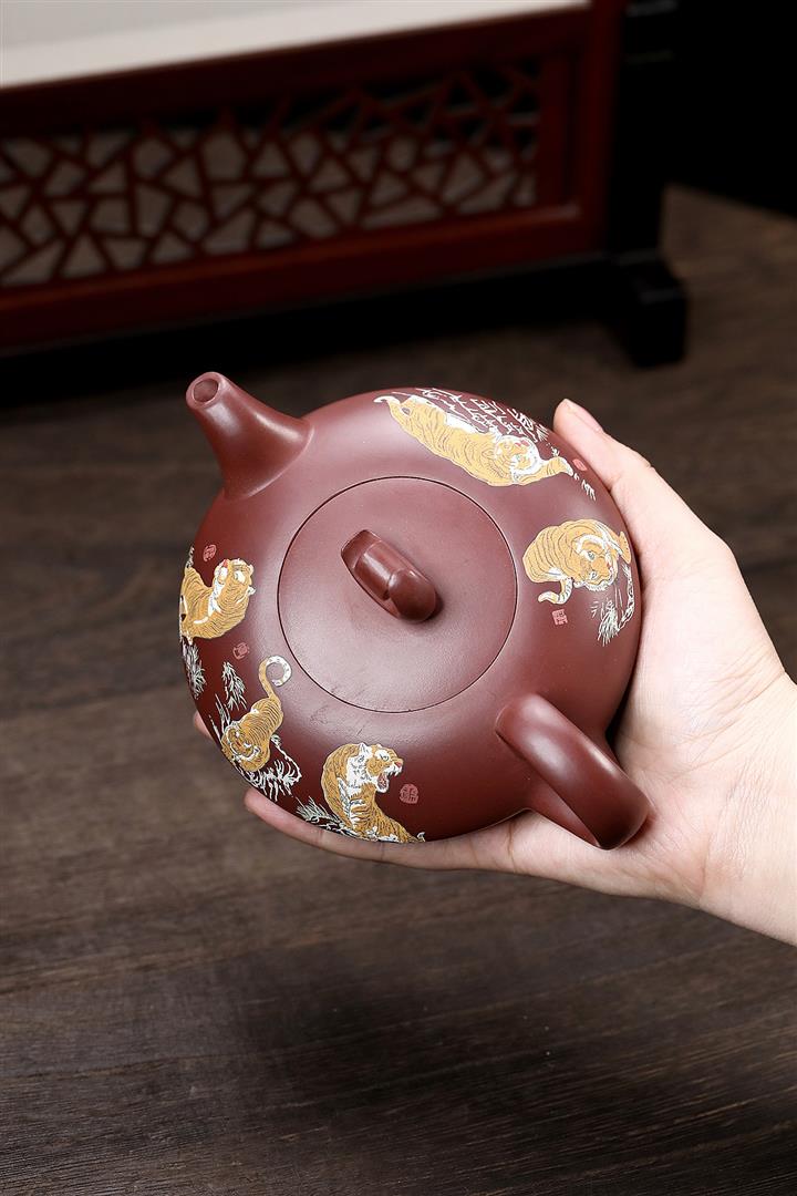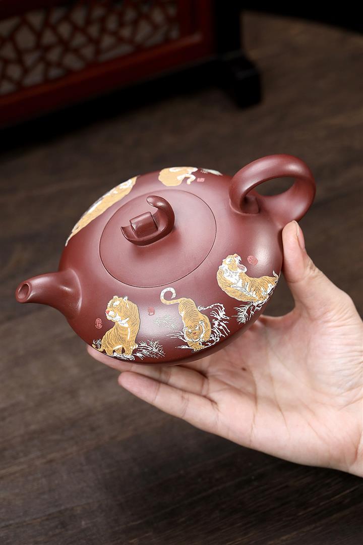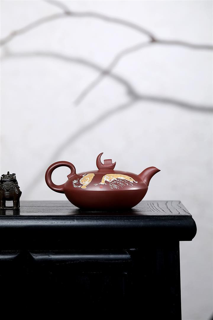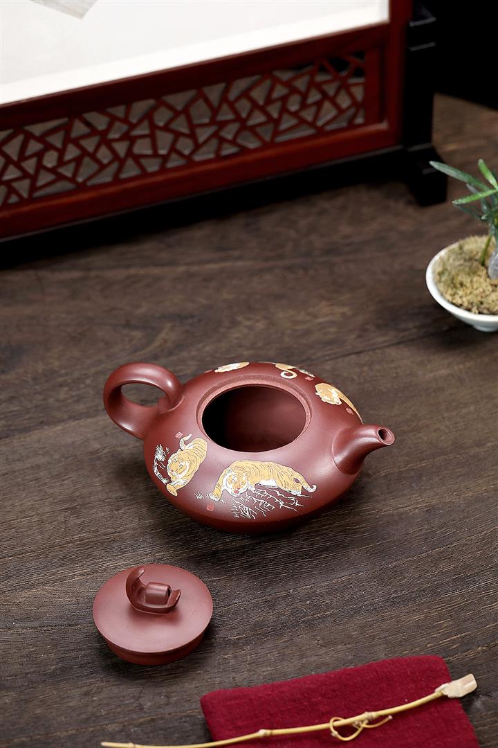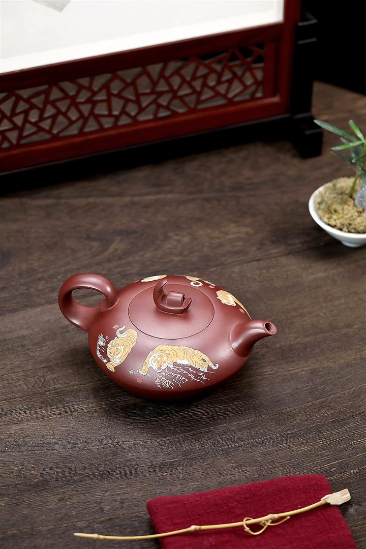 原礦紫泥手工泥繪虎嘯山河茶壺POT6785