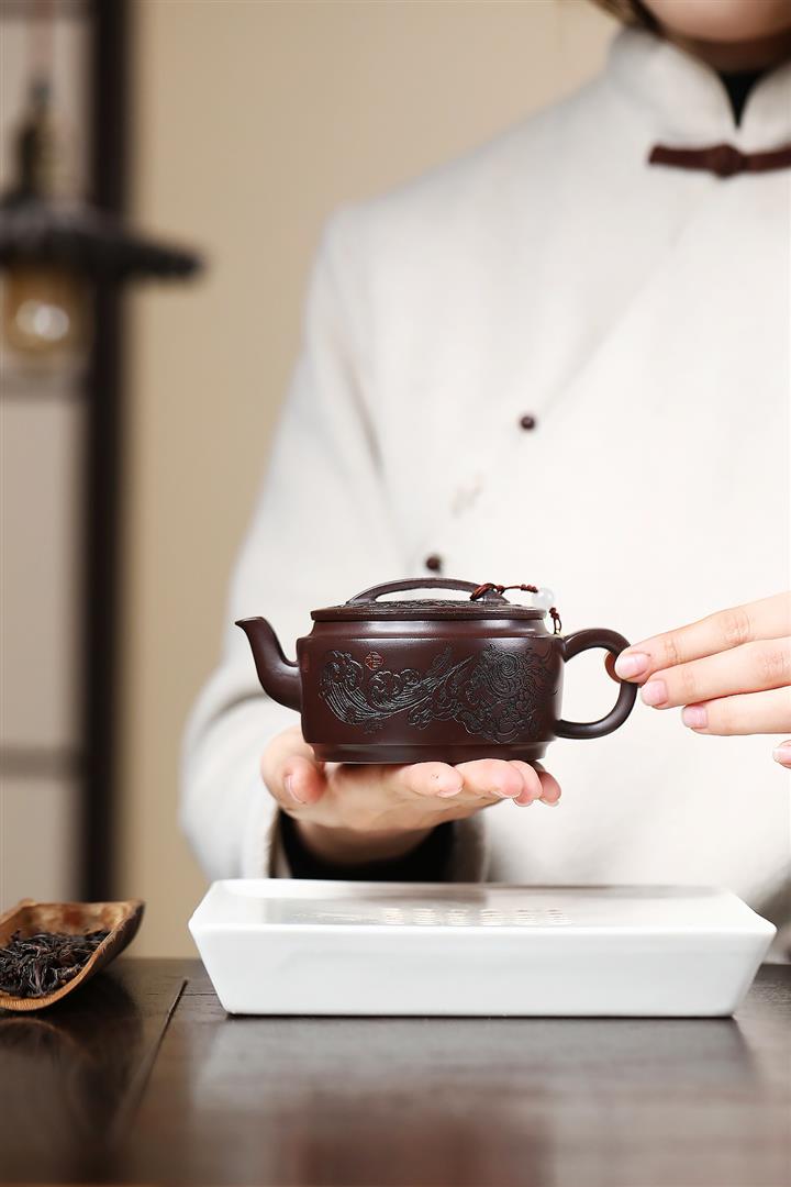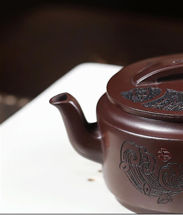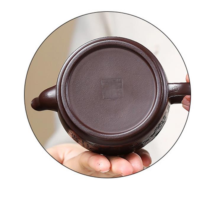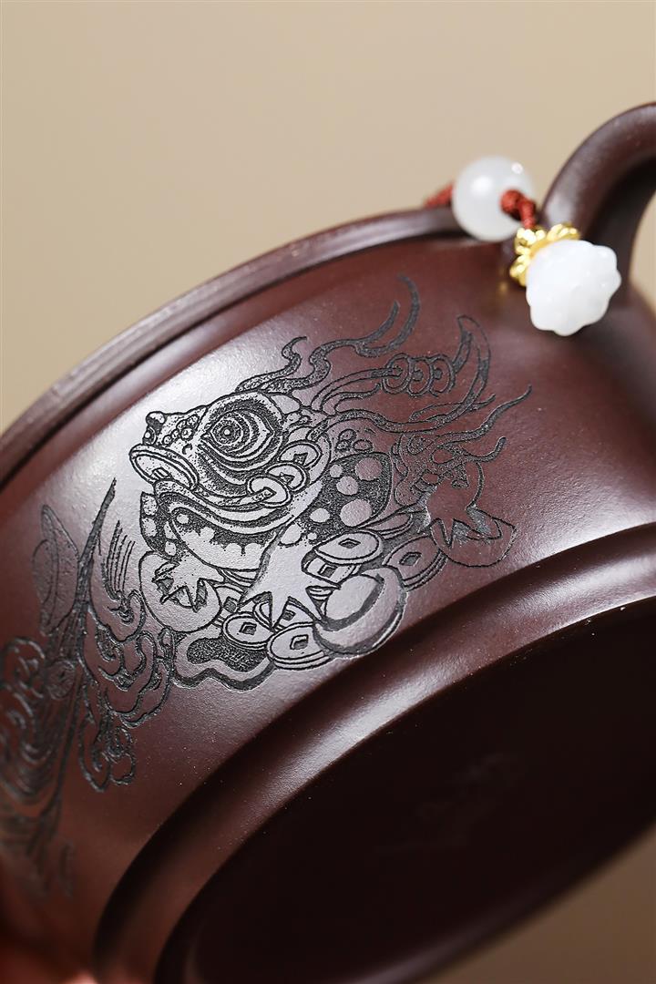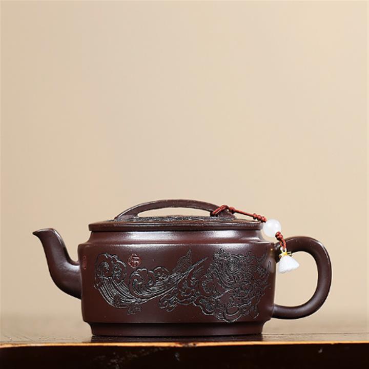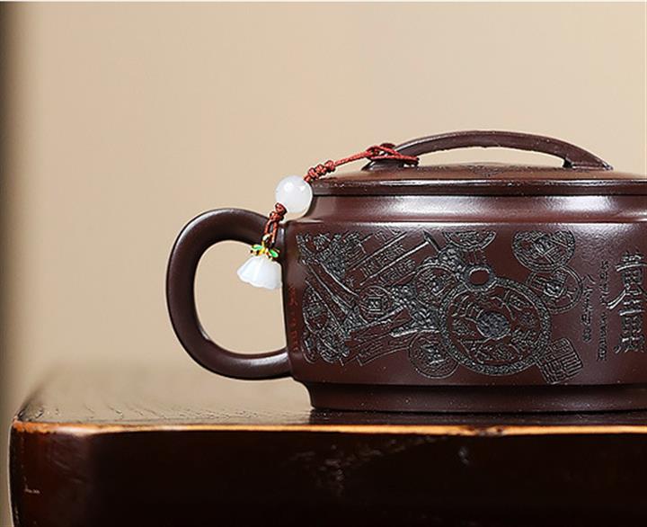 原礦老紫泥手工刻字招財進寶漢瓦茶壺POT6787