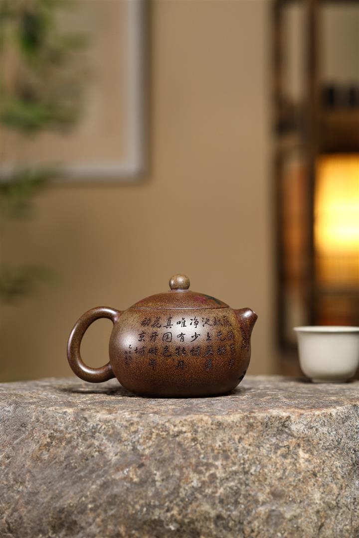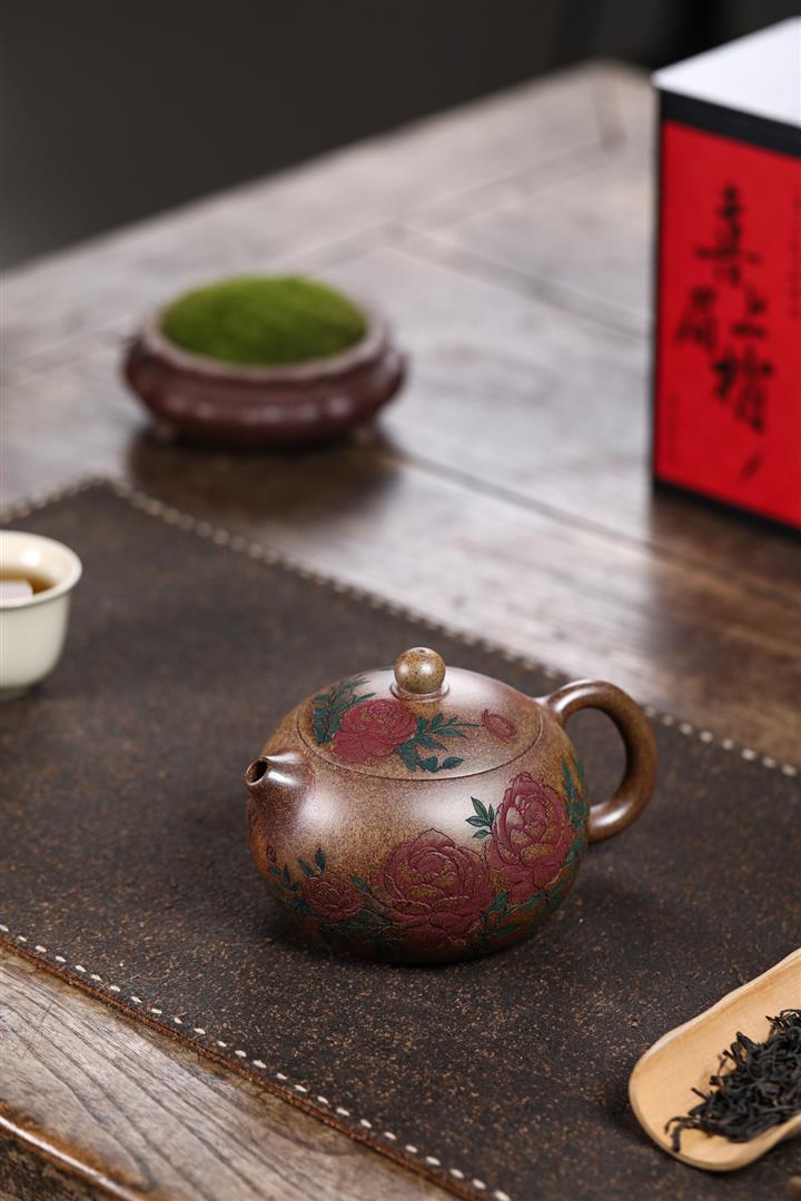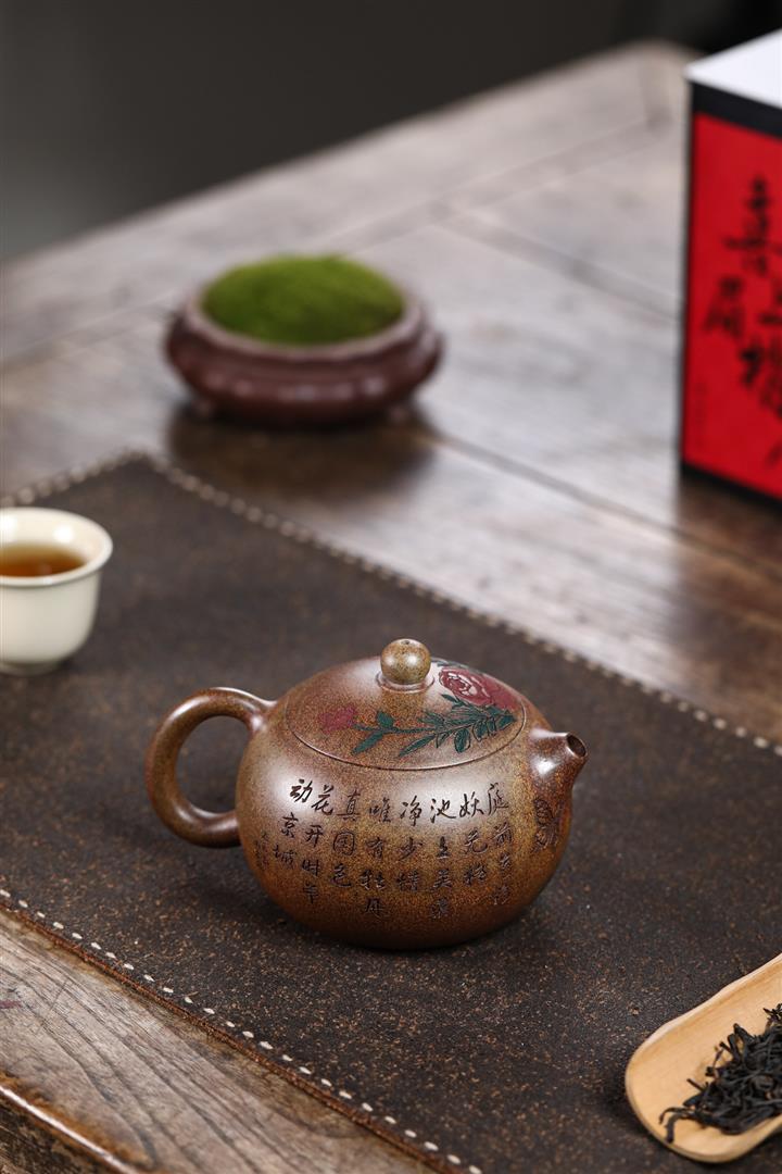 原礦粉泥純手工描金琺瑯寒江茶壺POT6796