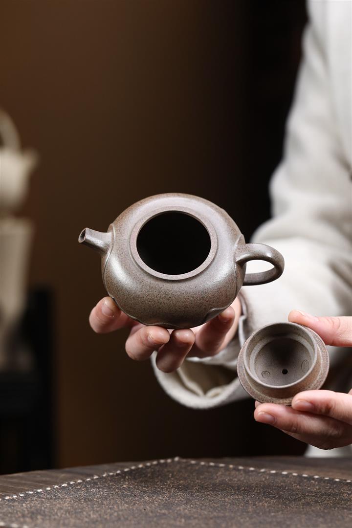 青段泥高溫還原燒手製柿圓茶壺POT6793