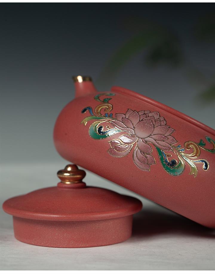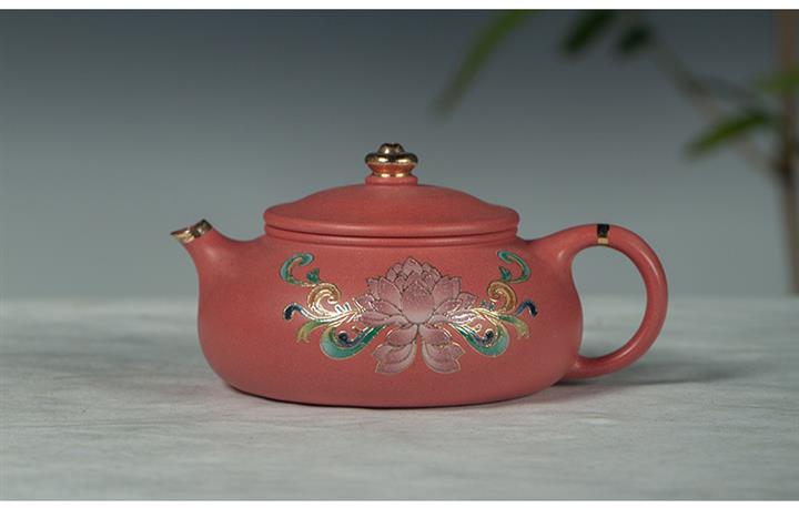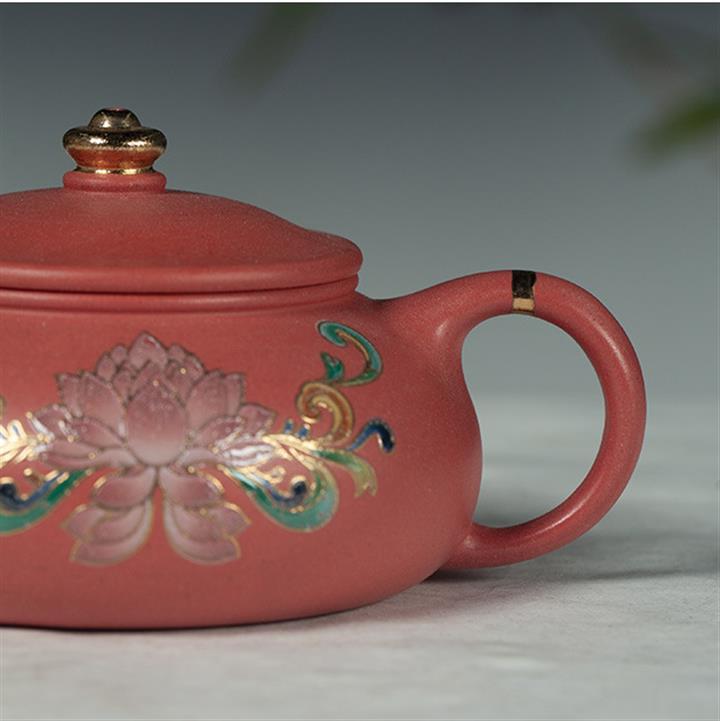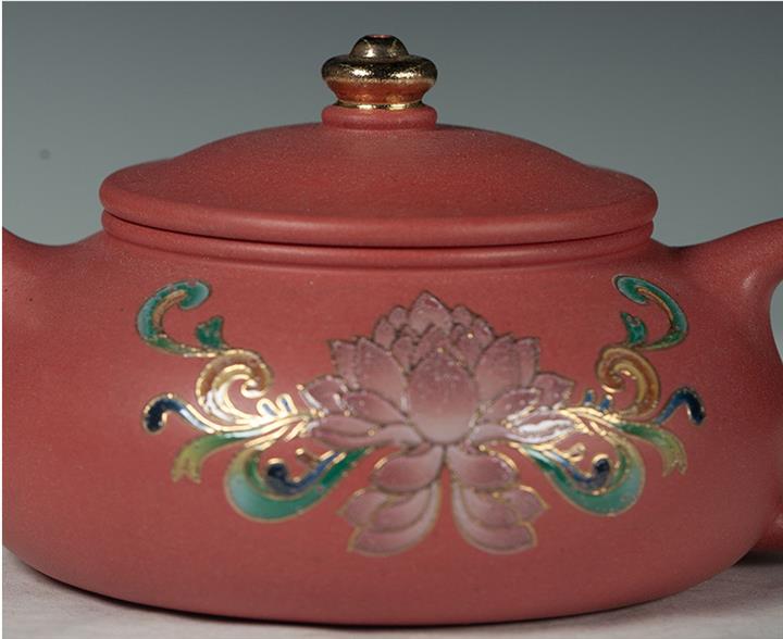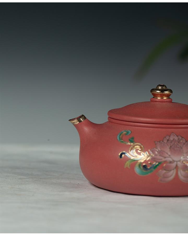 原礦粉泥純手工描金琺瑯寒江茶壺POT6796