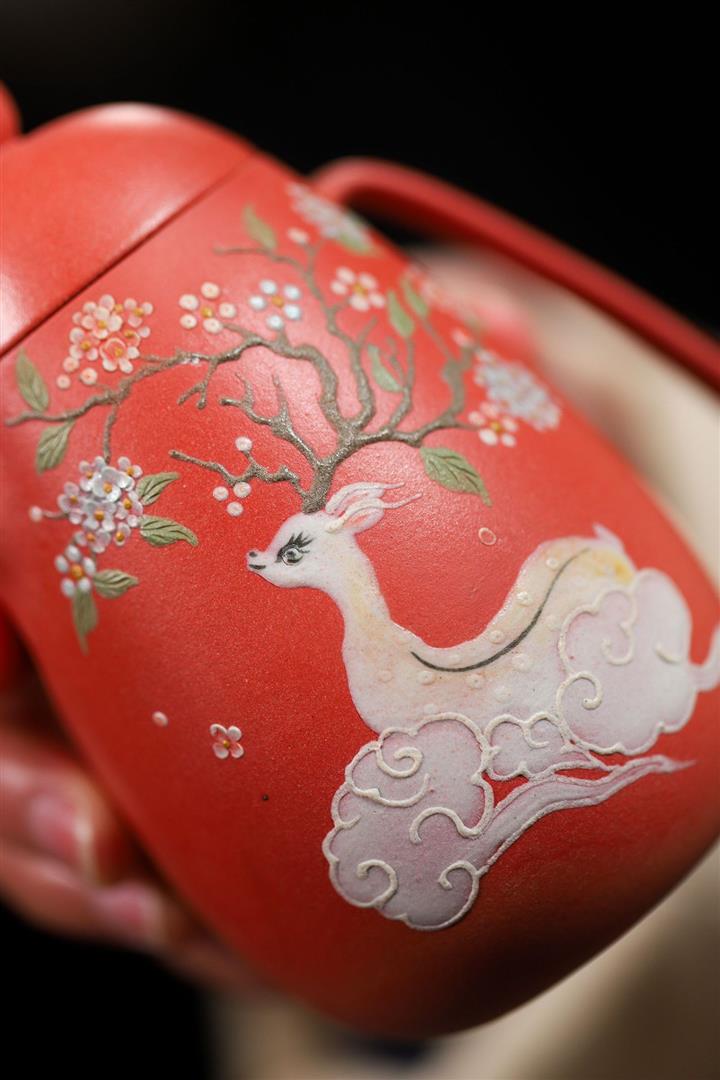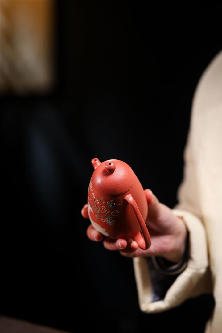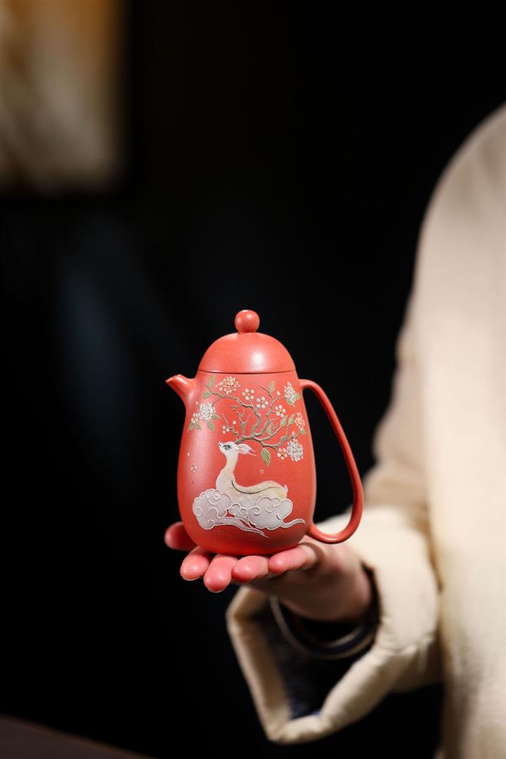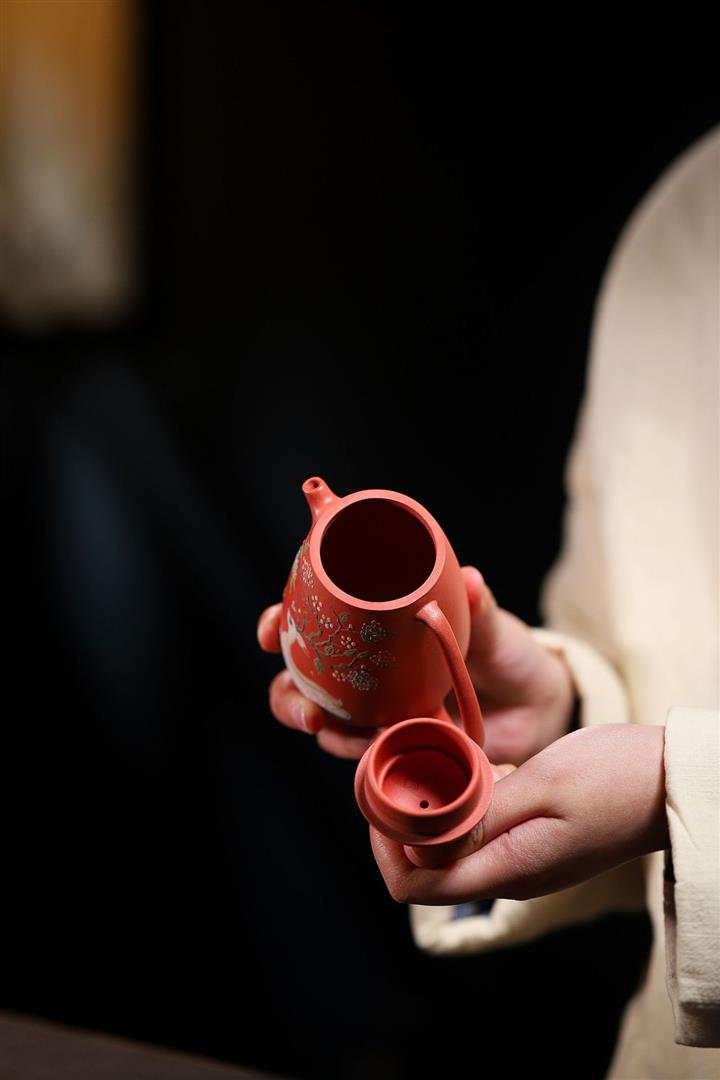 紅降坡手工喜上眉梢玫紅漢瓦茶壺POT6811