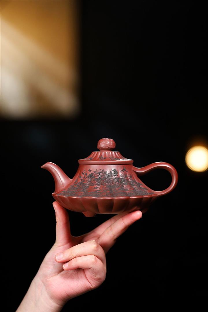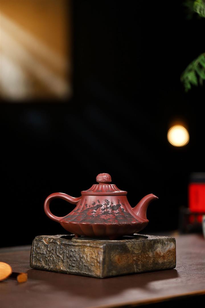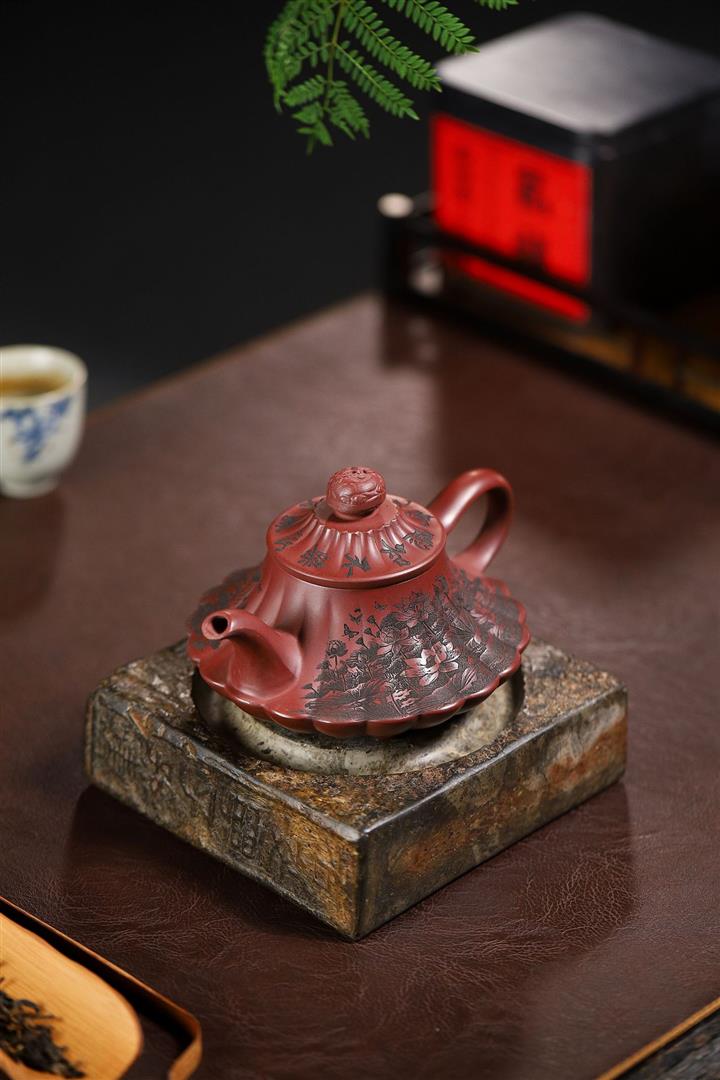 原礦龍血砂手工蓮花清趣筋紋雲爐茶壺POT6812