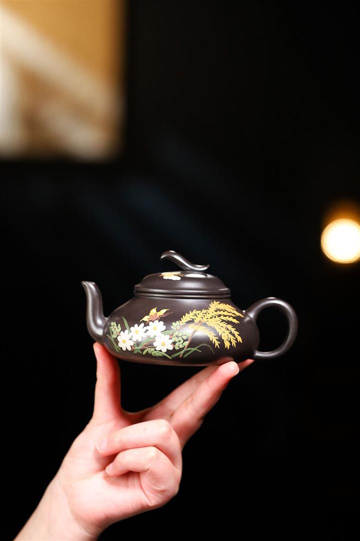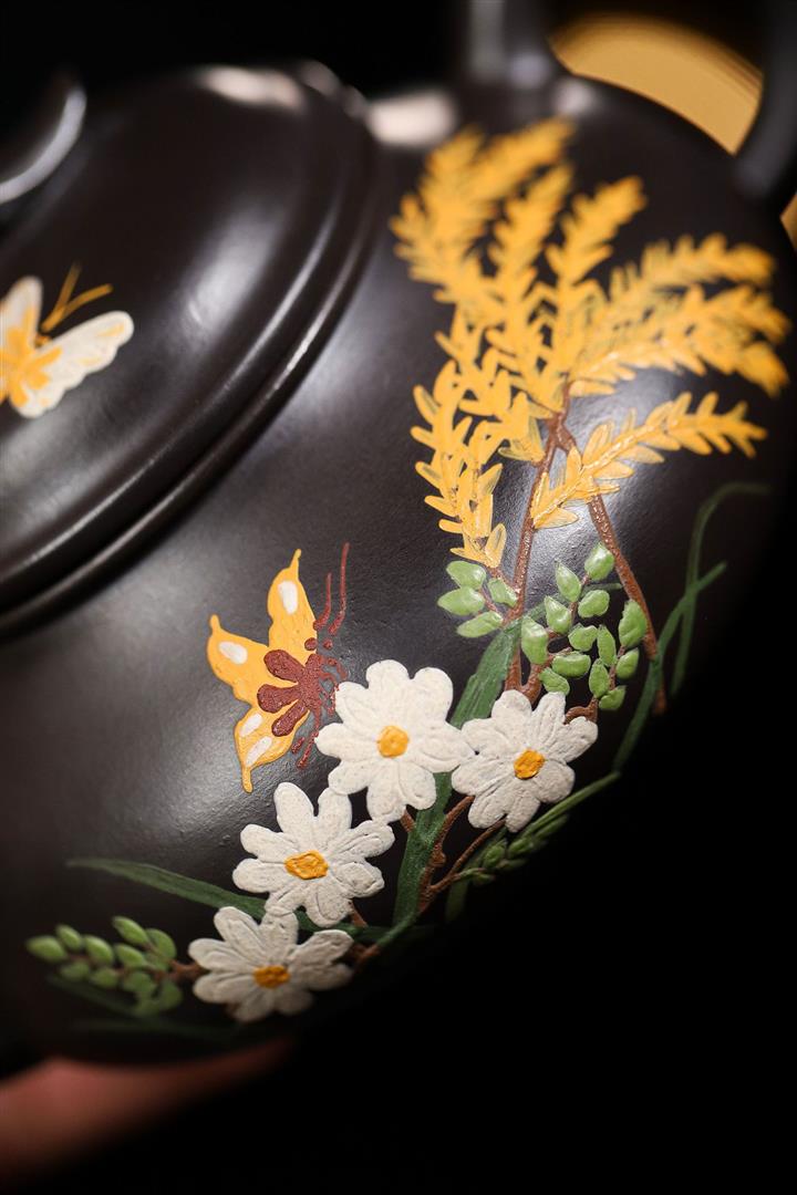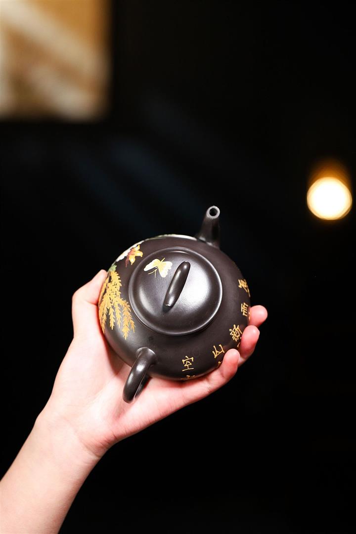 原礦黑朱泥全手工蝶戀花疾風茶壺POT6813
