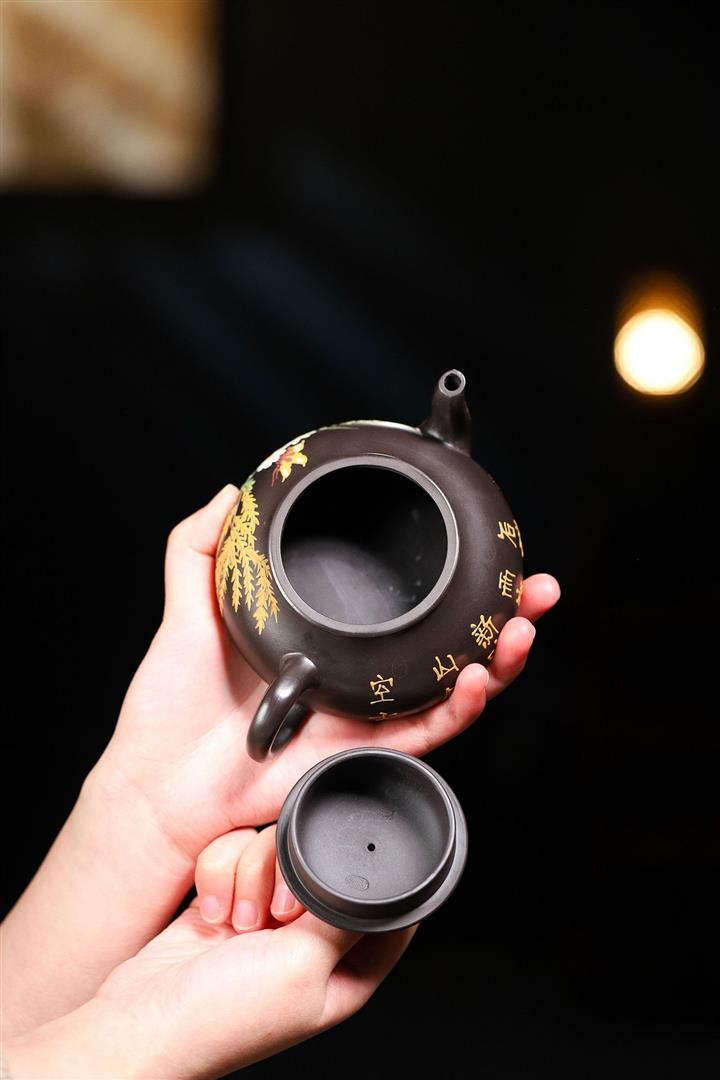 原礦紫泥全手工描金一心向佛茶壺POT6815