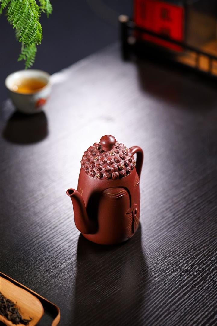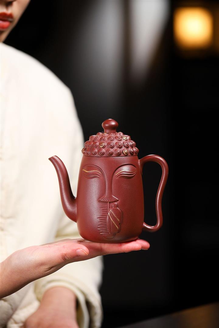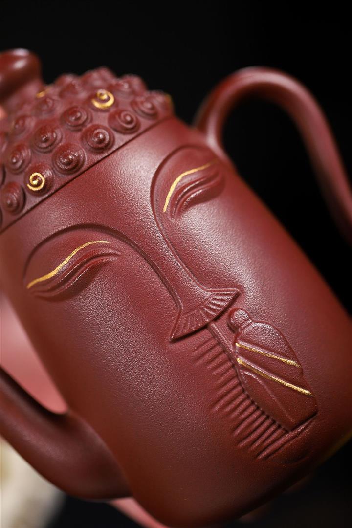 原礦紫泥全手工描金一心向佛茶壺POT6815