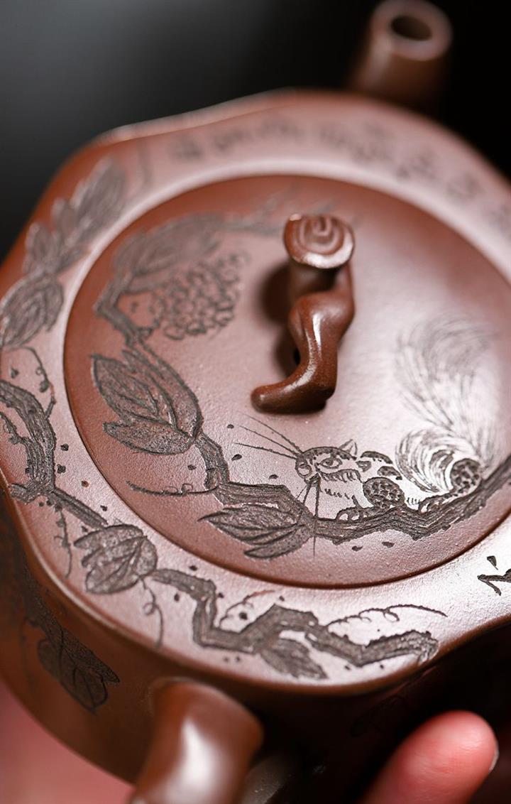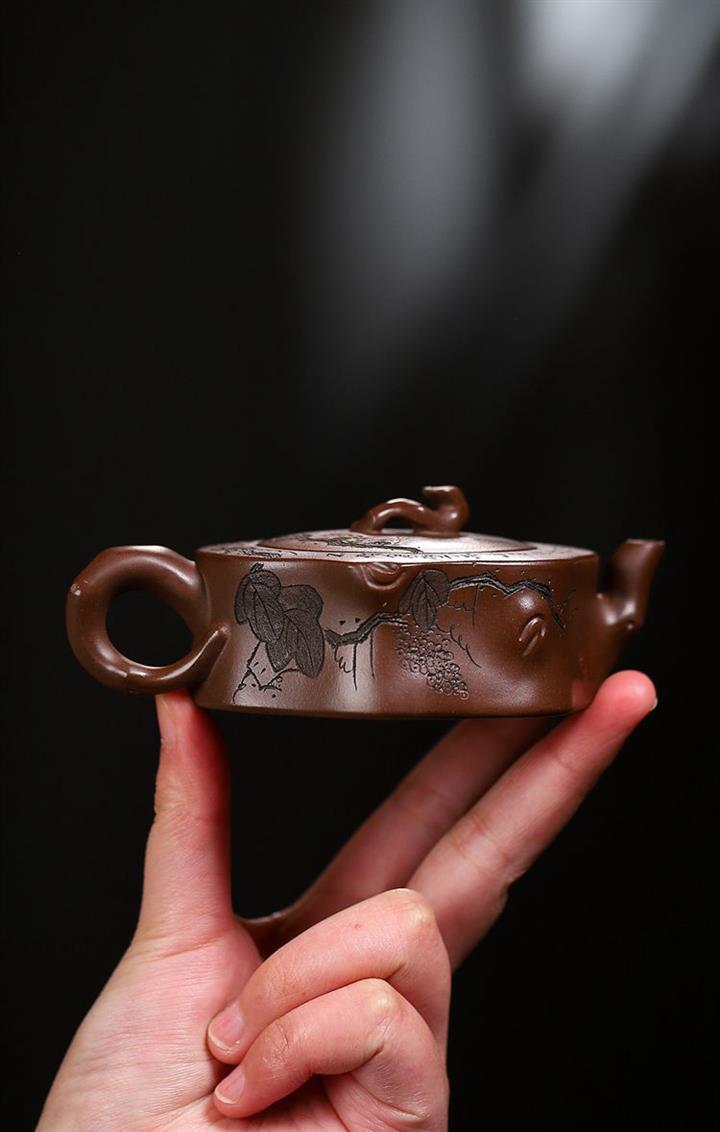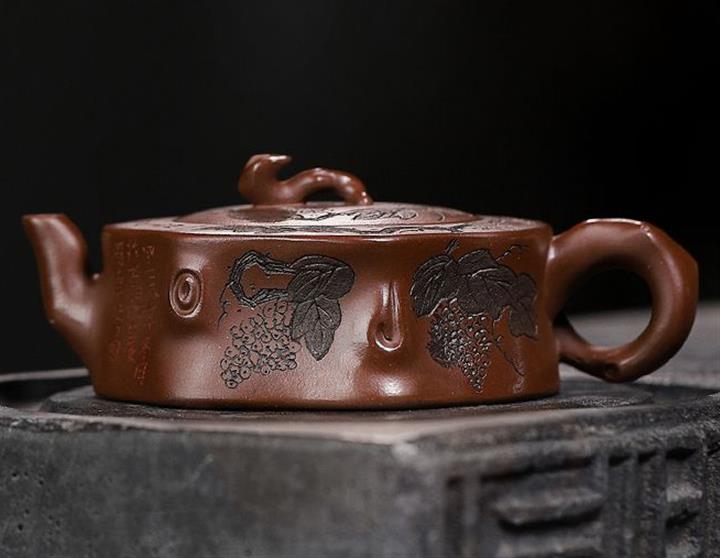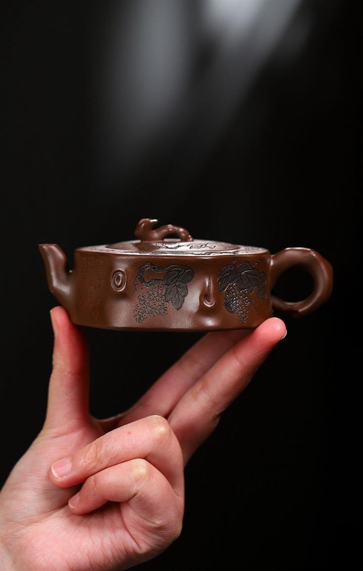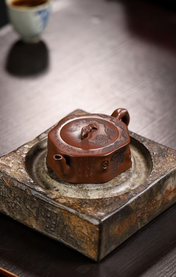 原礦革紫泥純手工刻繪樹樁茶壺POT6820