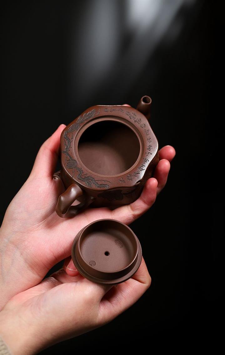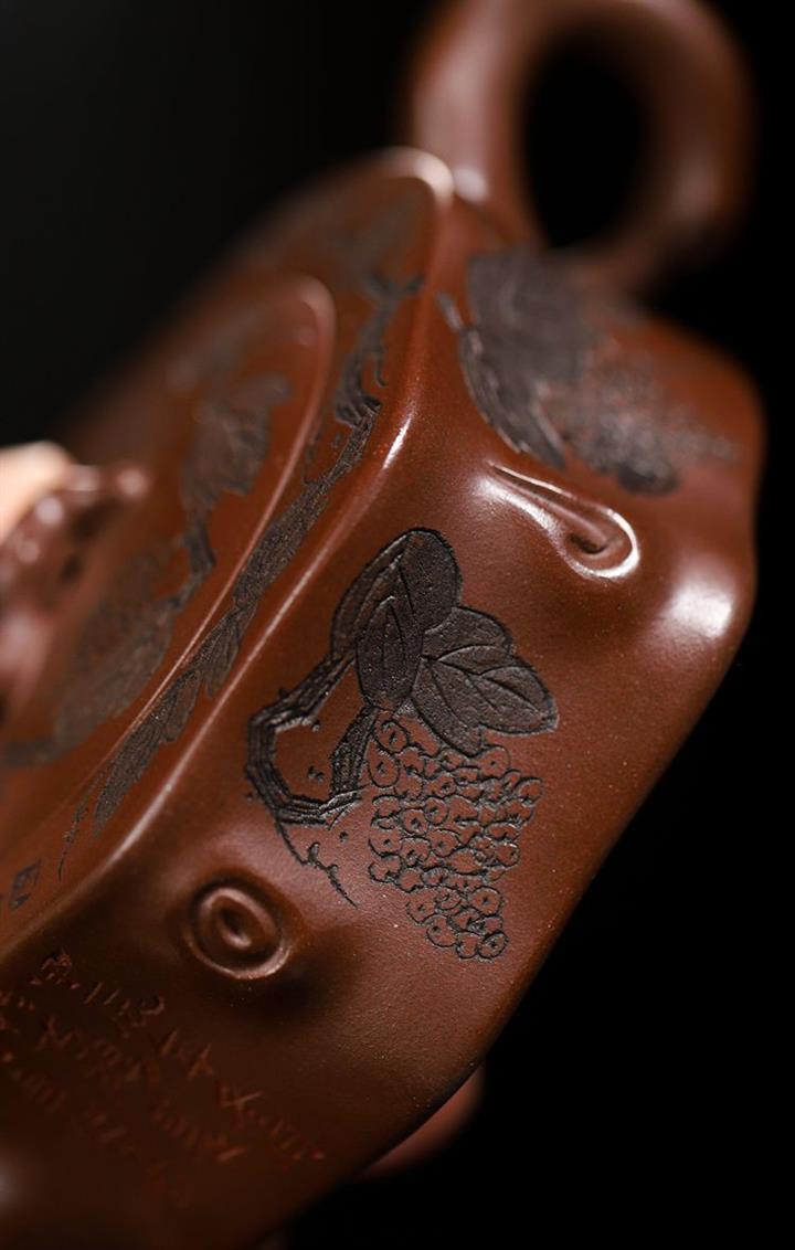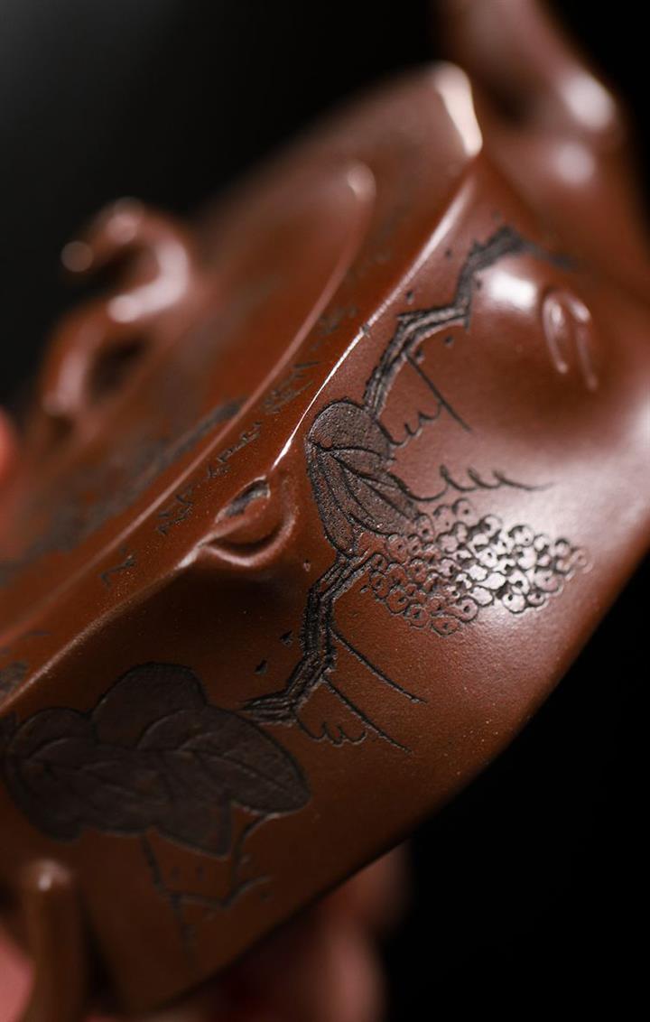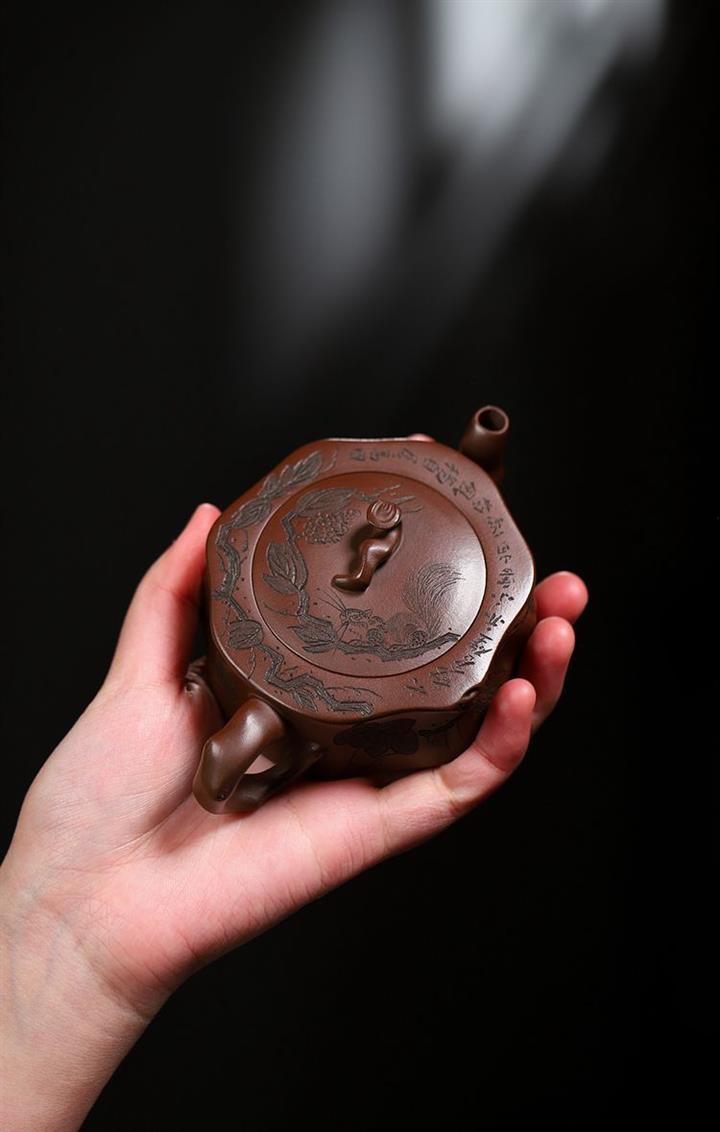 原礦革紫泥純手工刻繪樹樁茶壺POT6820