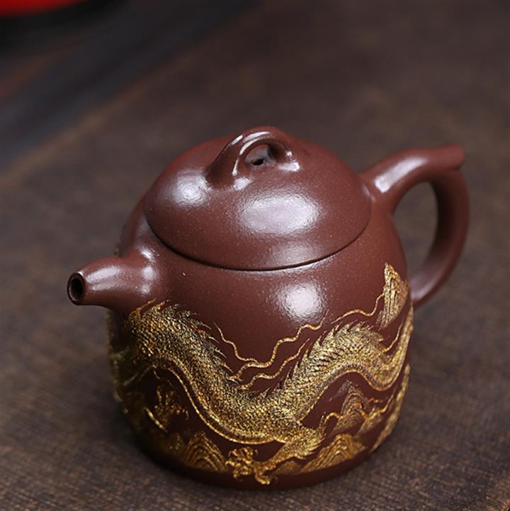 原礦紫泥描金遊龍秦權茶壺POT6831