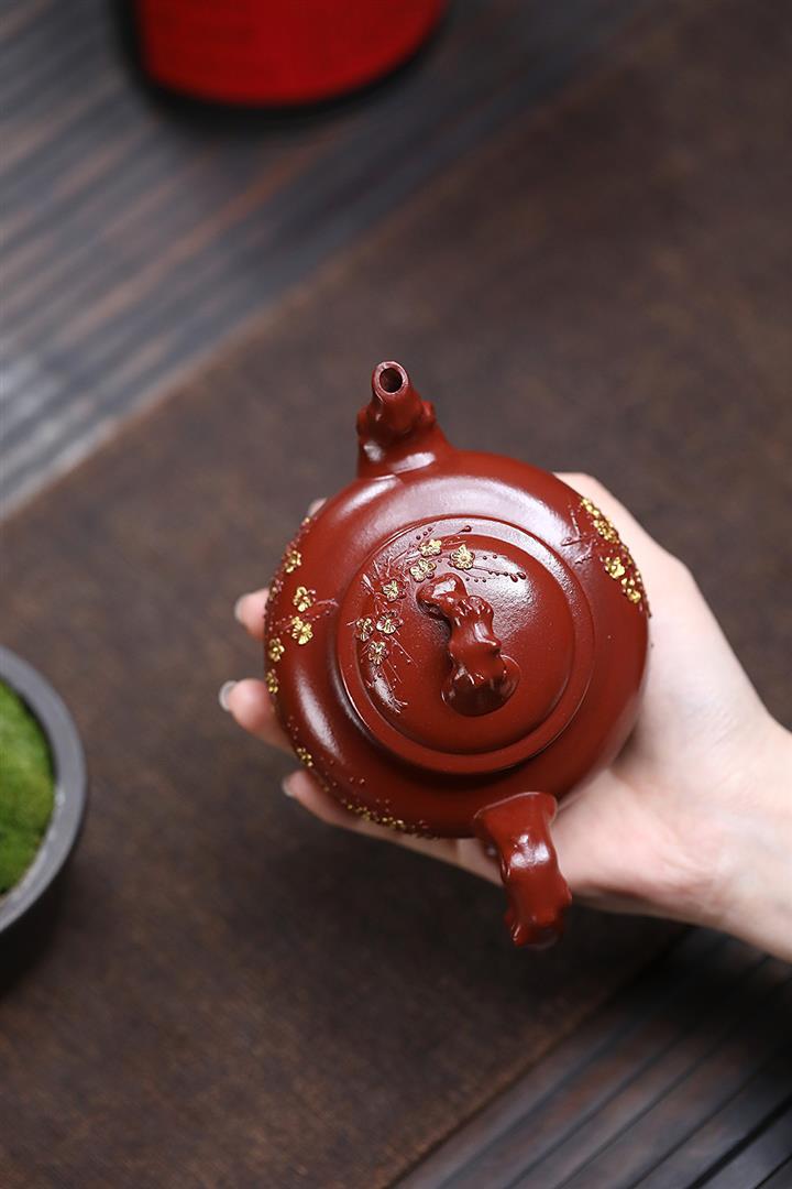 原礦紫泥描金遊龍秦權茶壺POT6831