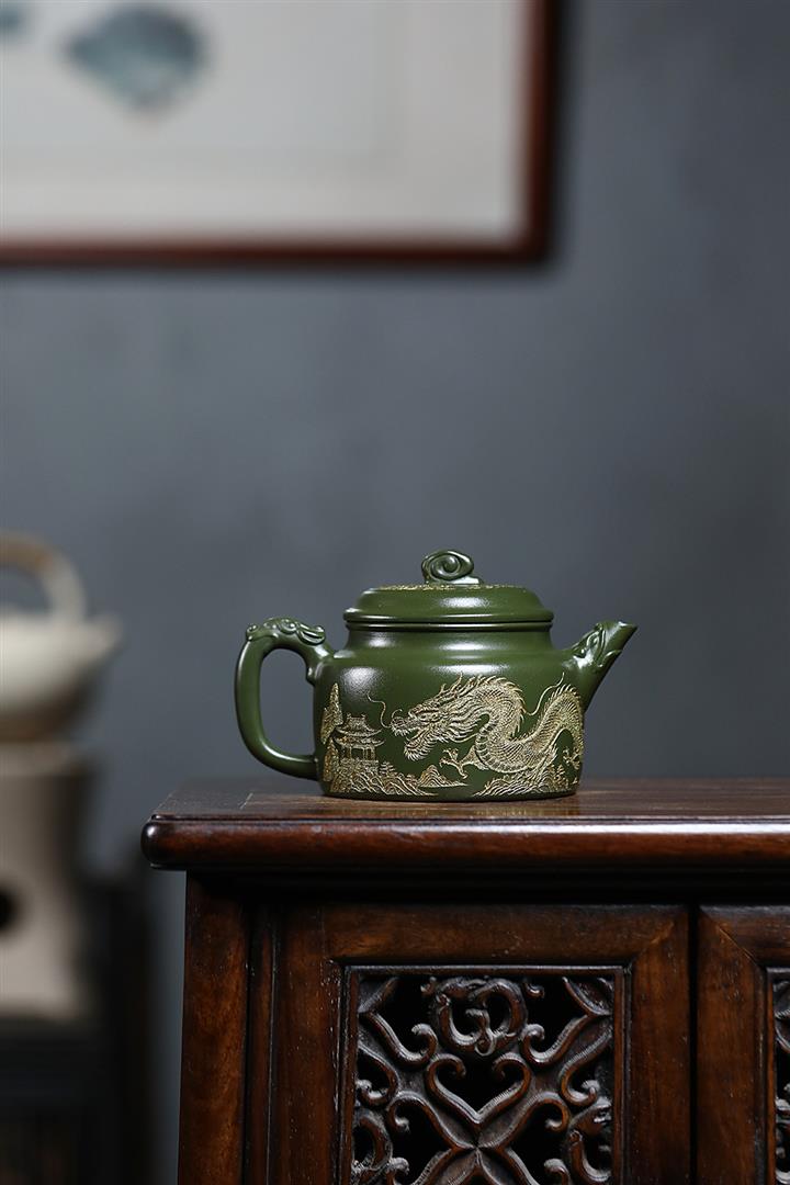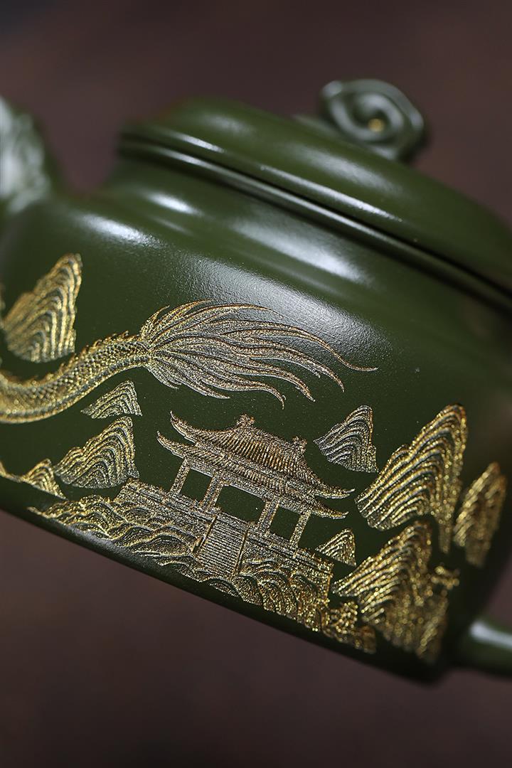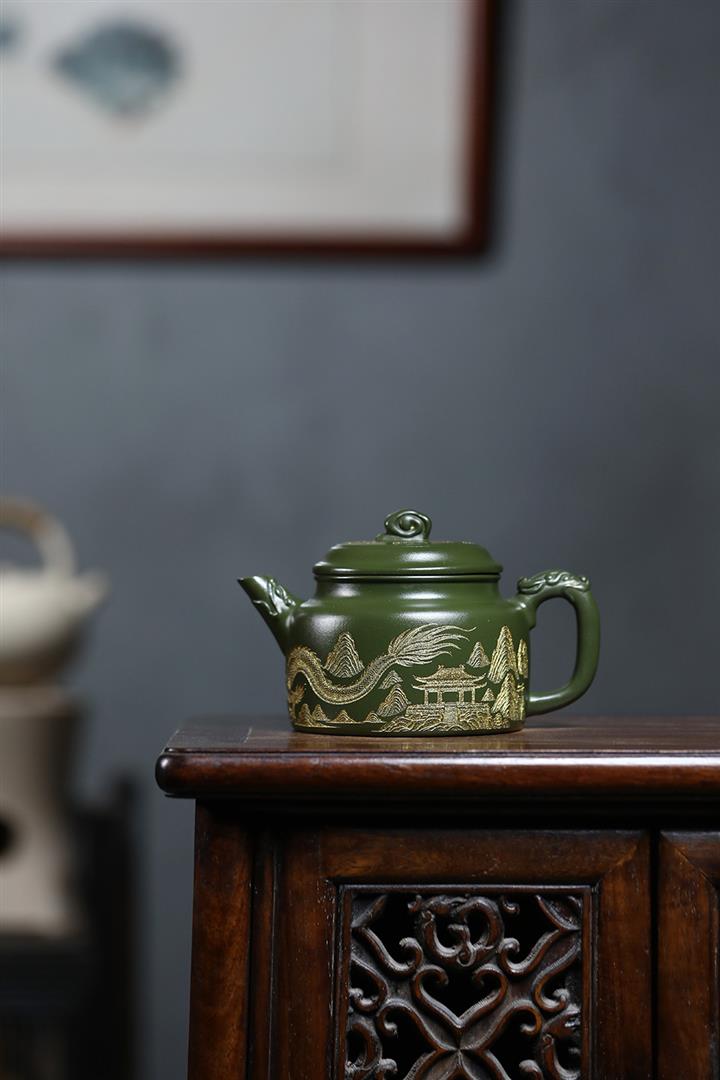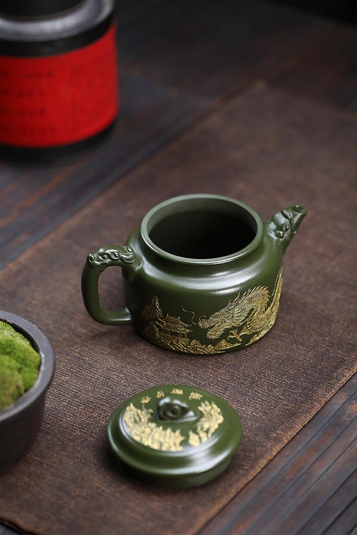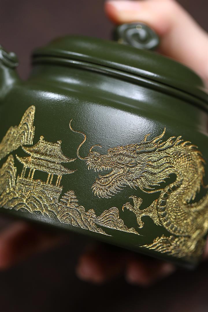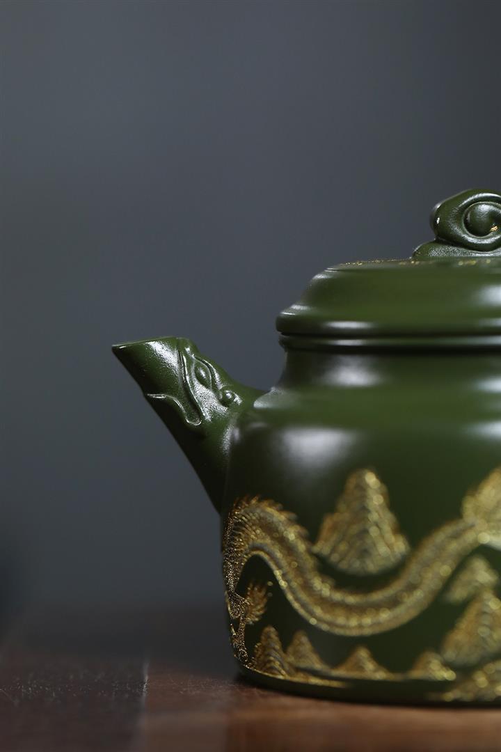 原礦紫泥描金遊龍秦權茶壺POT6831