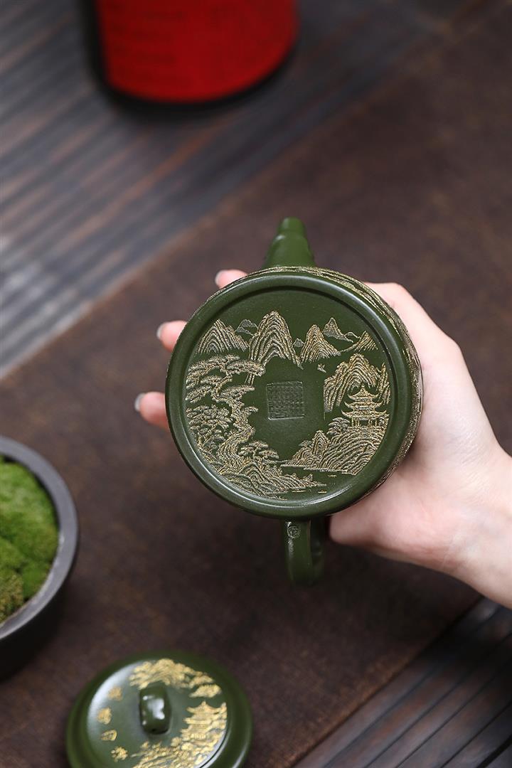 原礦優質綠泥手工蓮蓬汲直茶壺POT6841