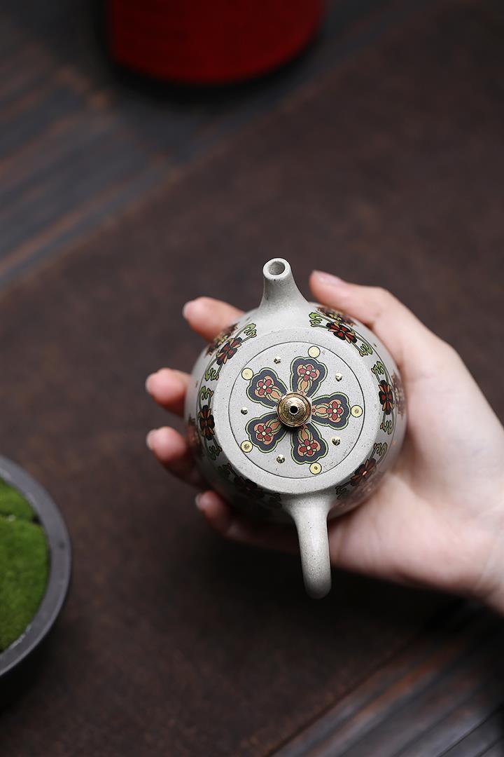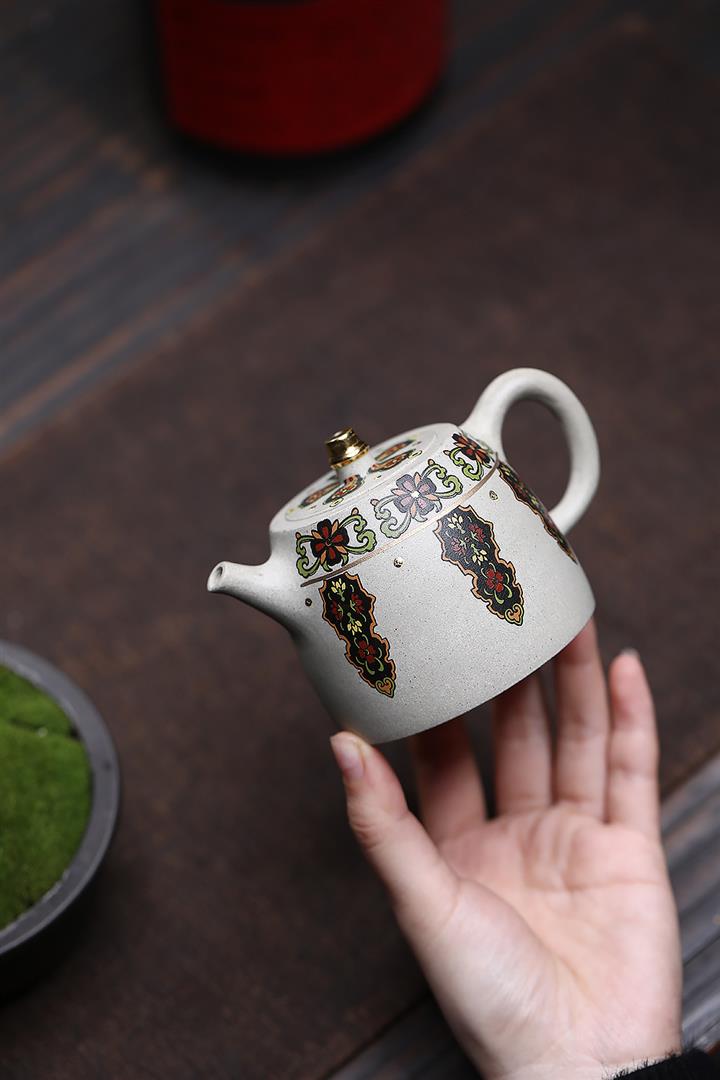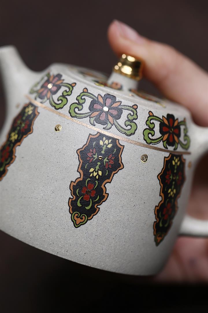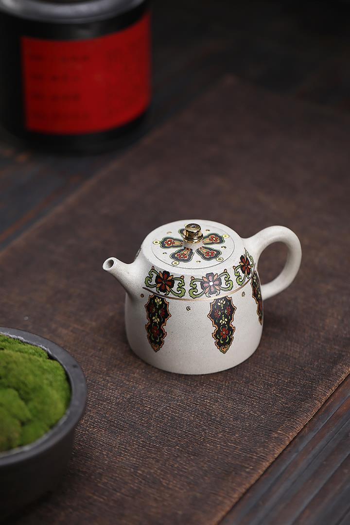 原礦白段泥琺瑯彩漢鐸茶壺POT6833