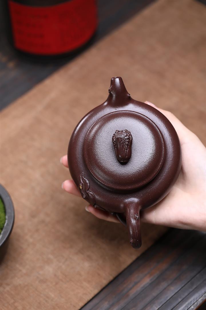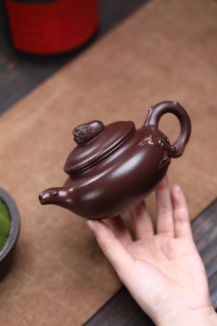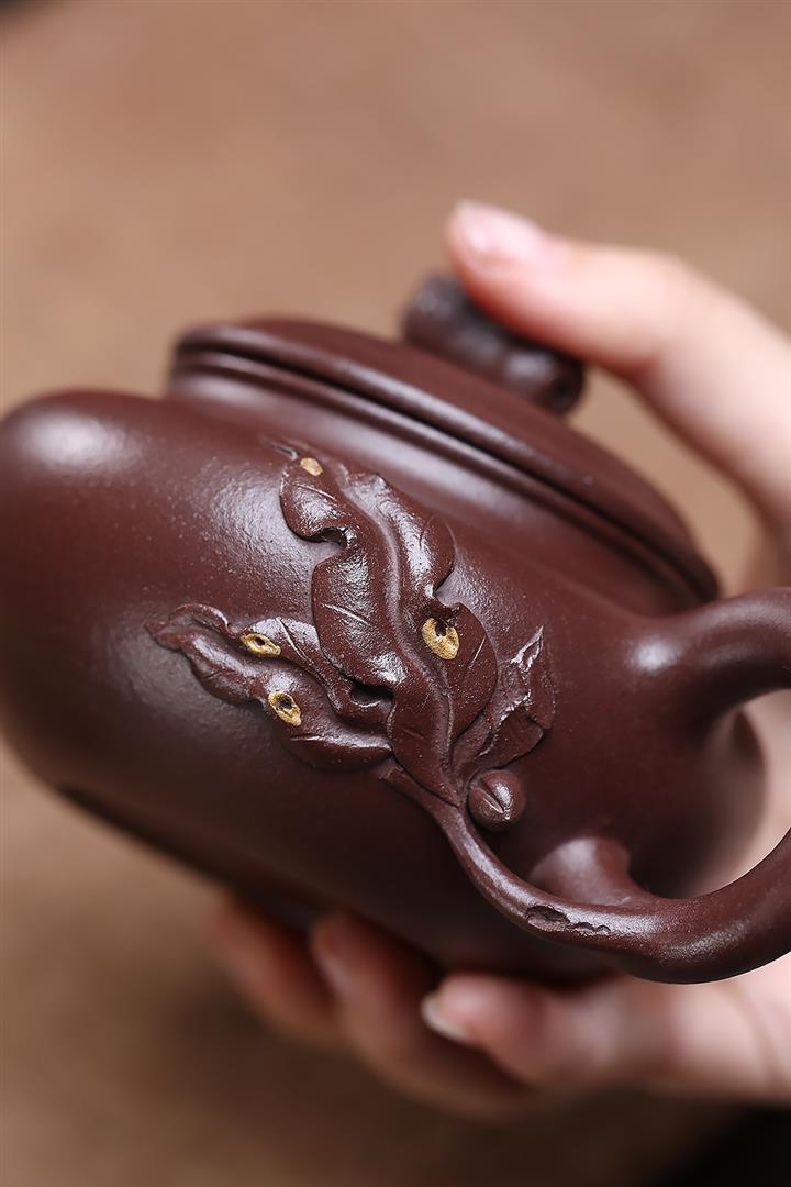 原礦紫泥金魚蓮子荷葉側把壺POT6837