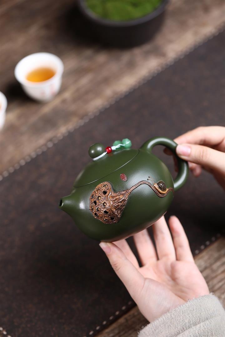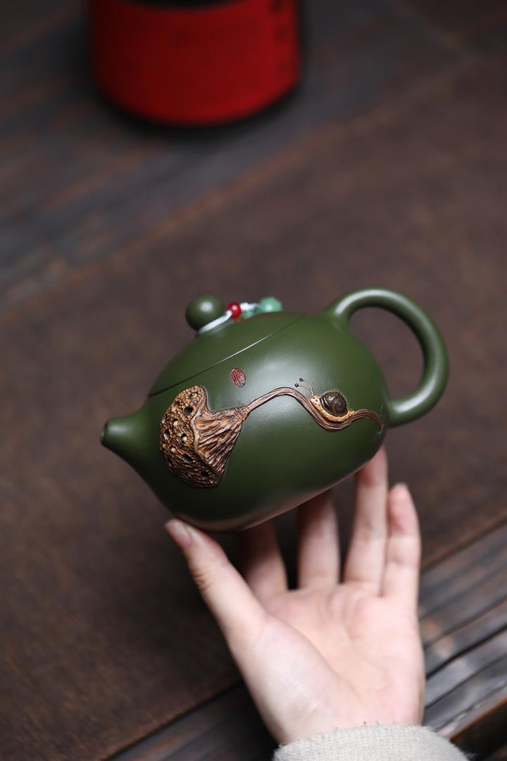 原礦優質綠泥手工蓮蓬西施茶壺POT6842