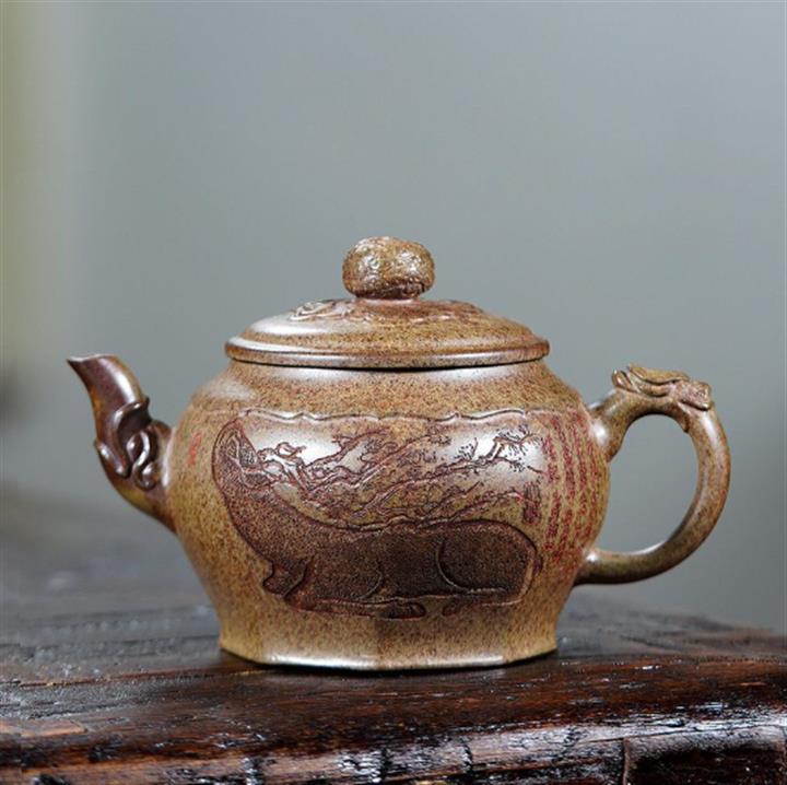原礦老青段泥純手工四方祥瑞茶壺POT6858