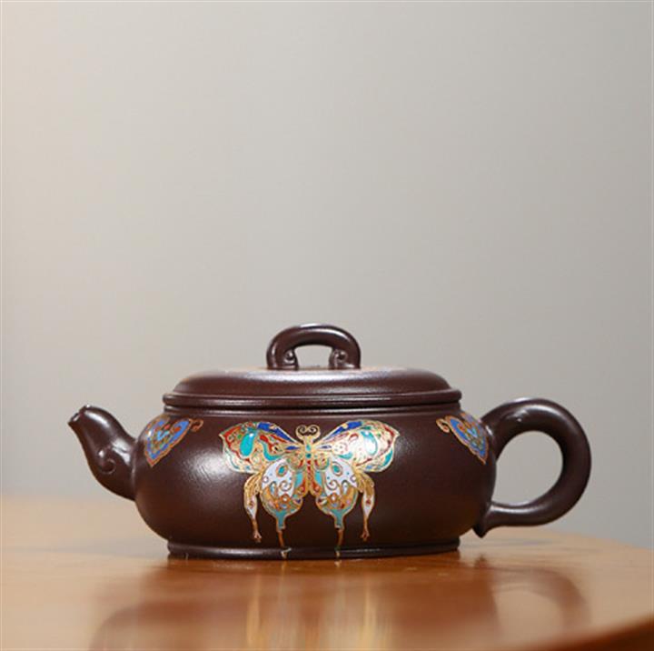 原礦紫茄泥純手工琺瑯彩宛蝶茶壺POT6862茶壺POT6862