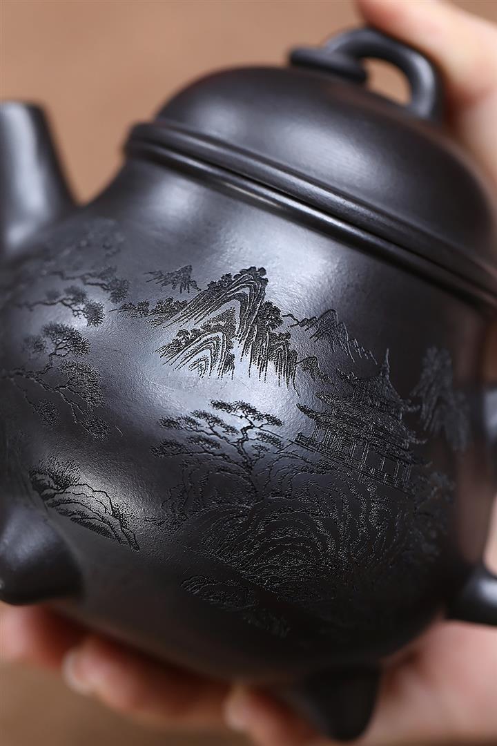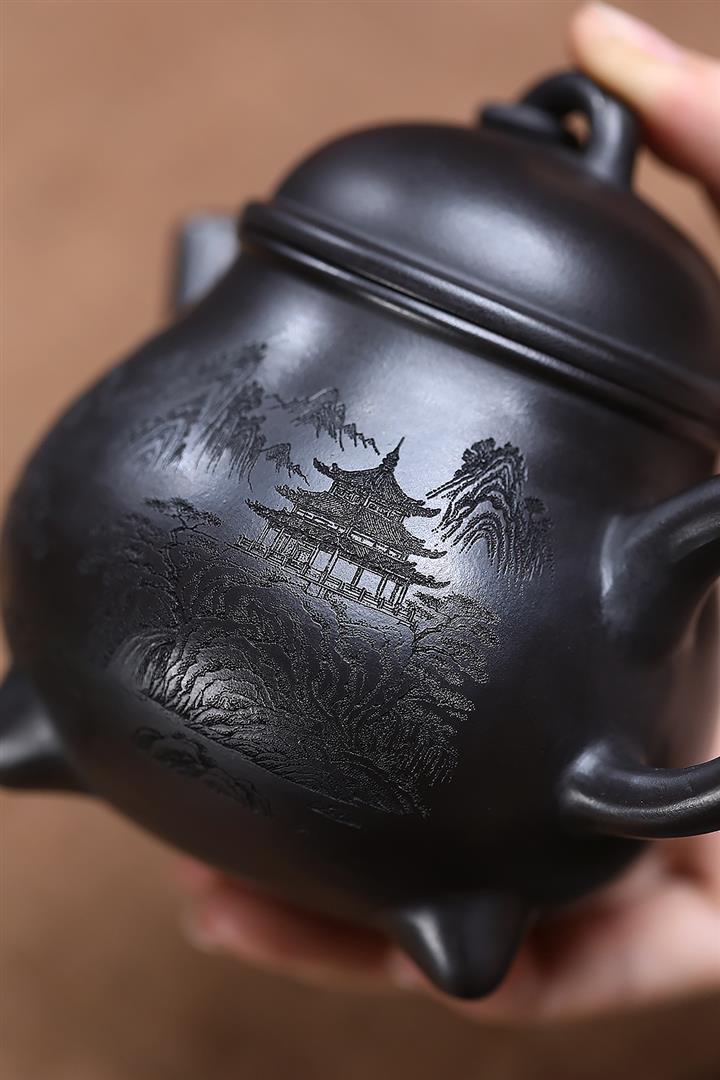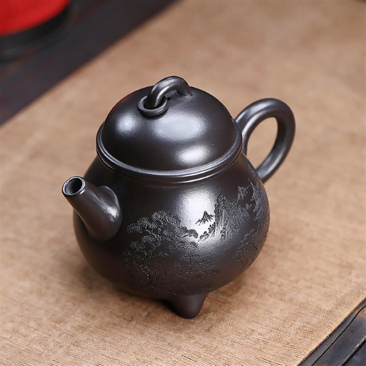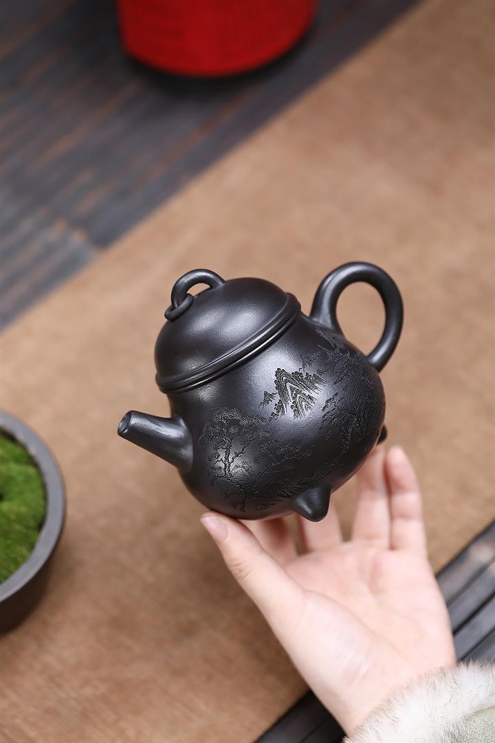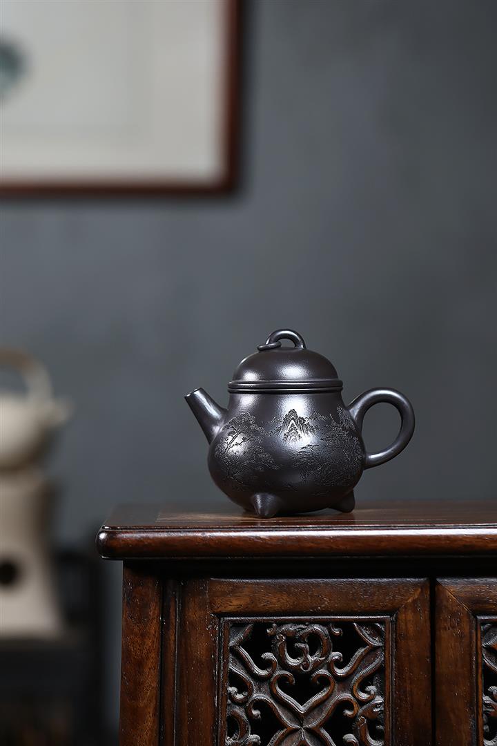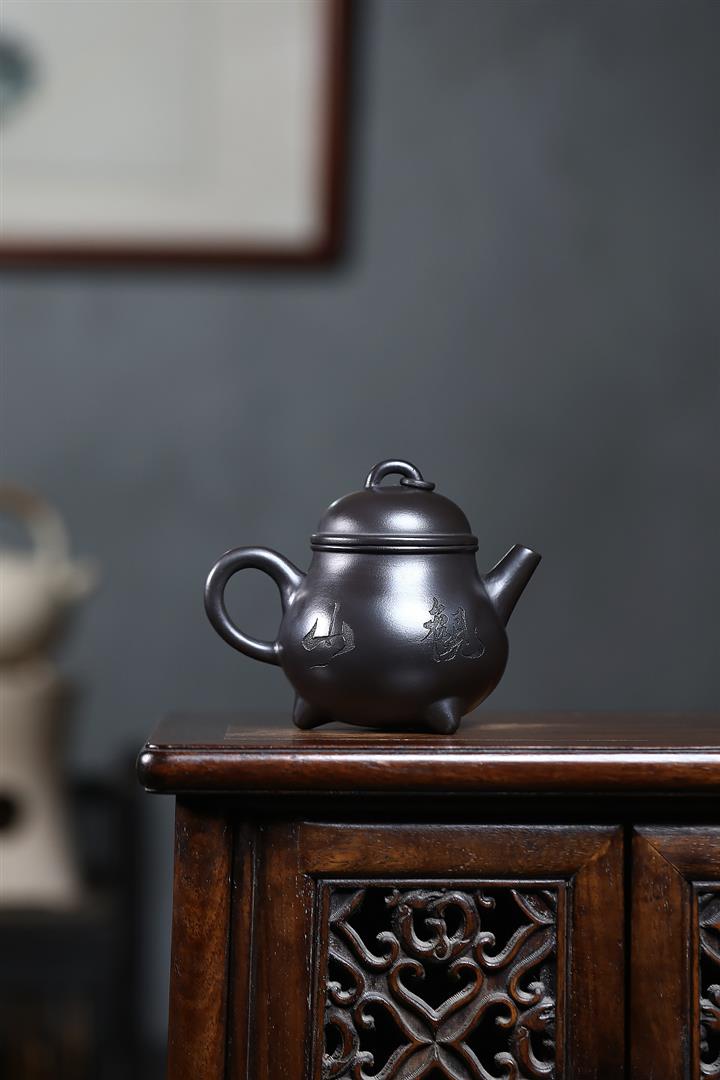 原礦烏金砂手工製作寒江茶壺POT6865