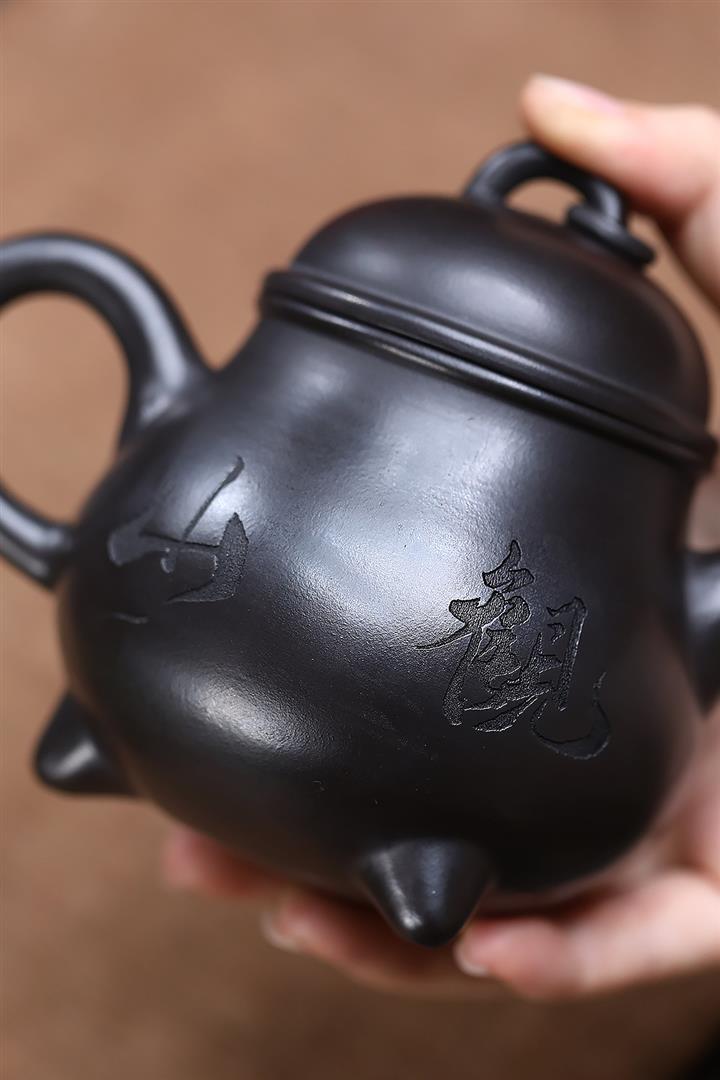 原礦玄鐵石黃三足乳鼎茶壺POT6849