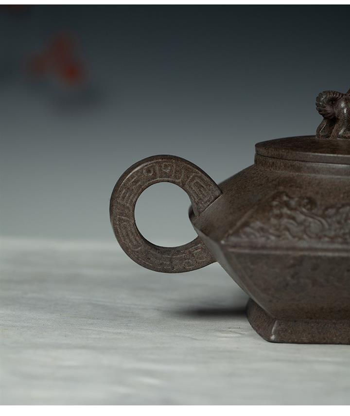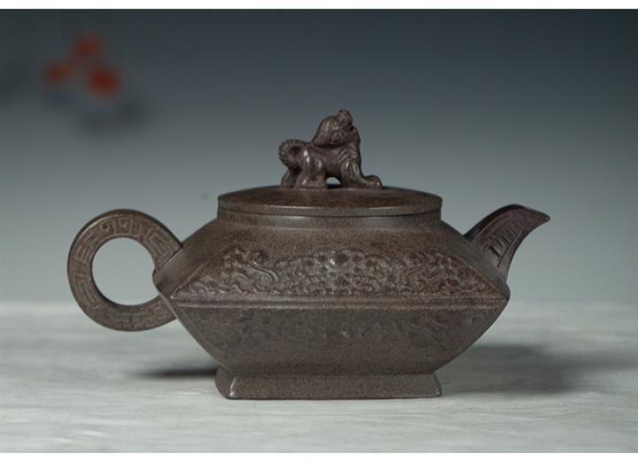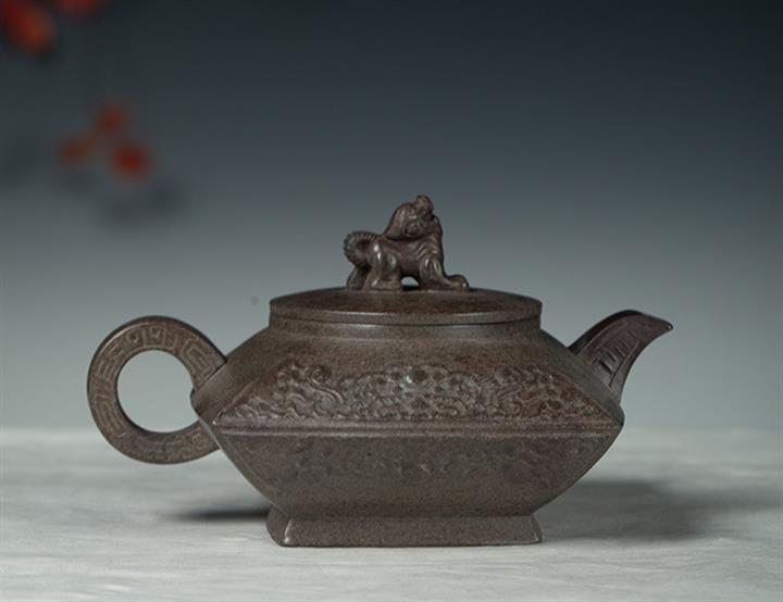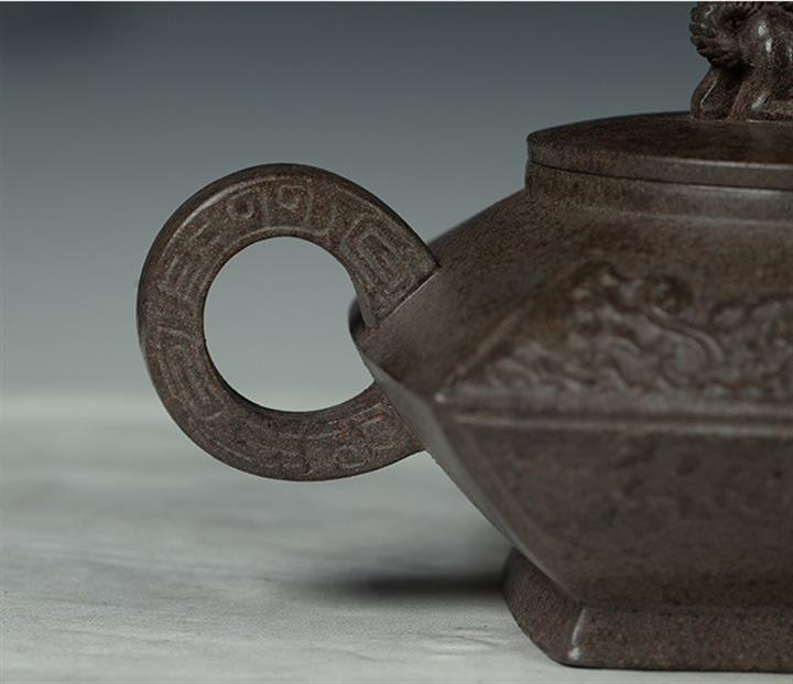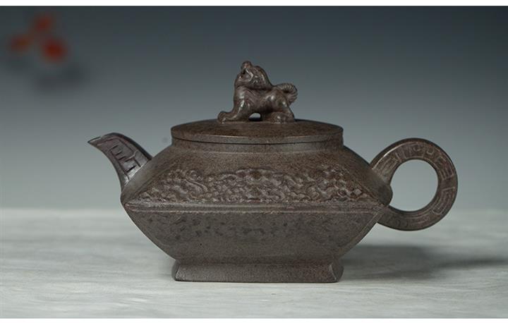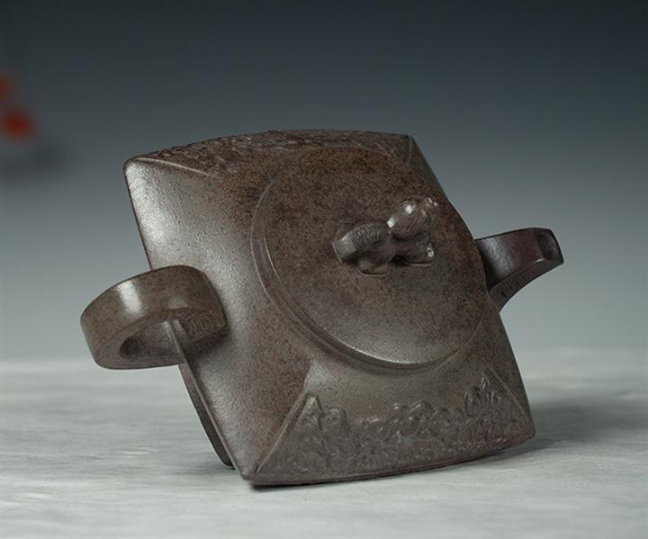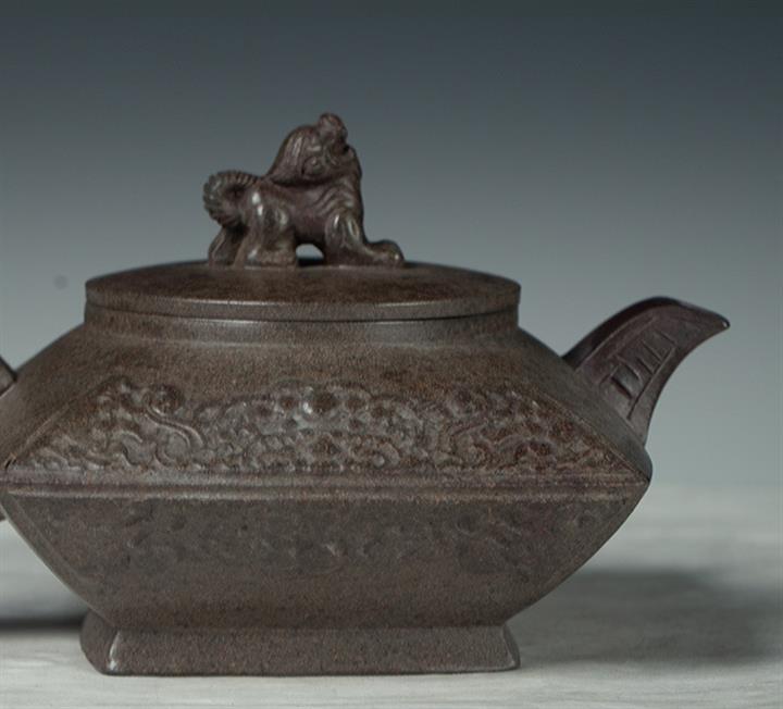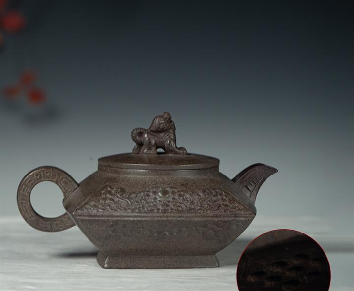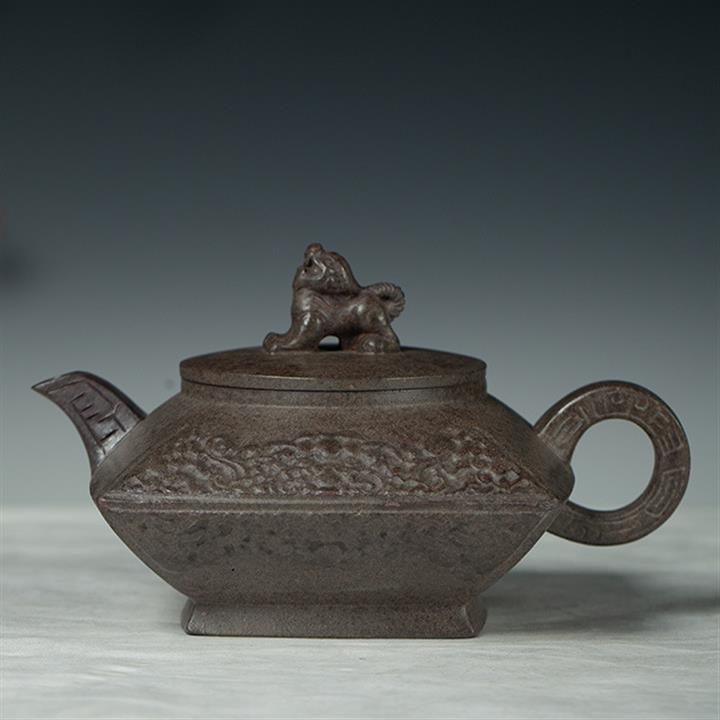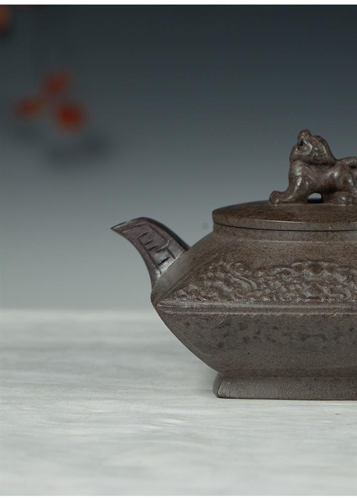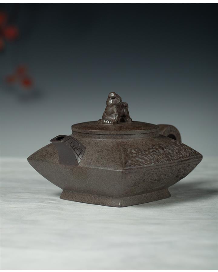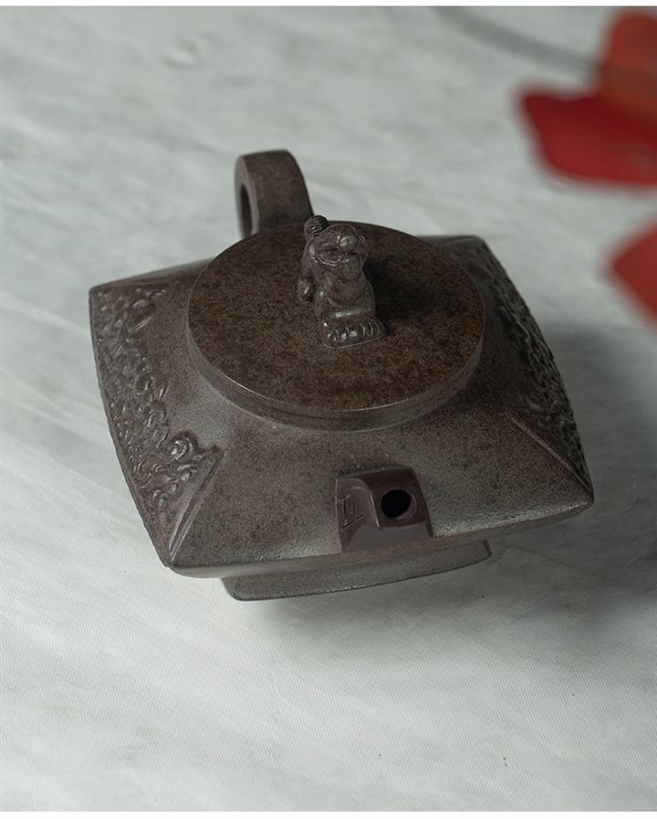 原礦老青段泥純手工四方祥瑞茶壺POT6858