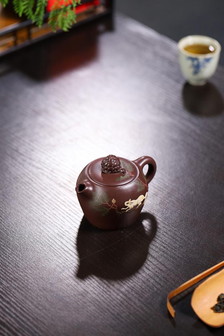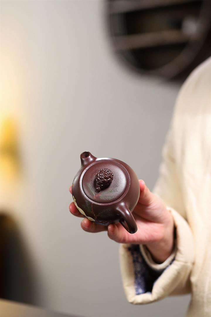 原礦紫茄泥手工製作松趣茶壺POT6863