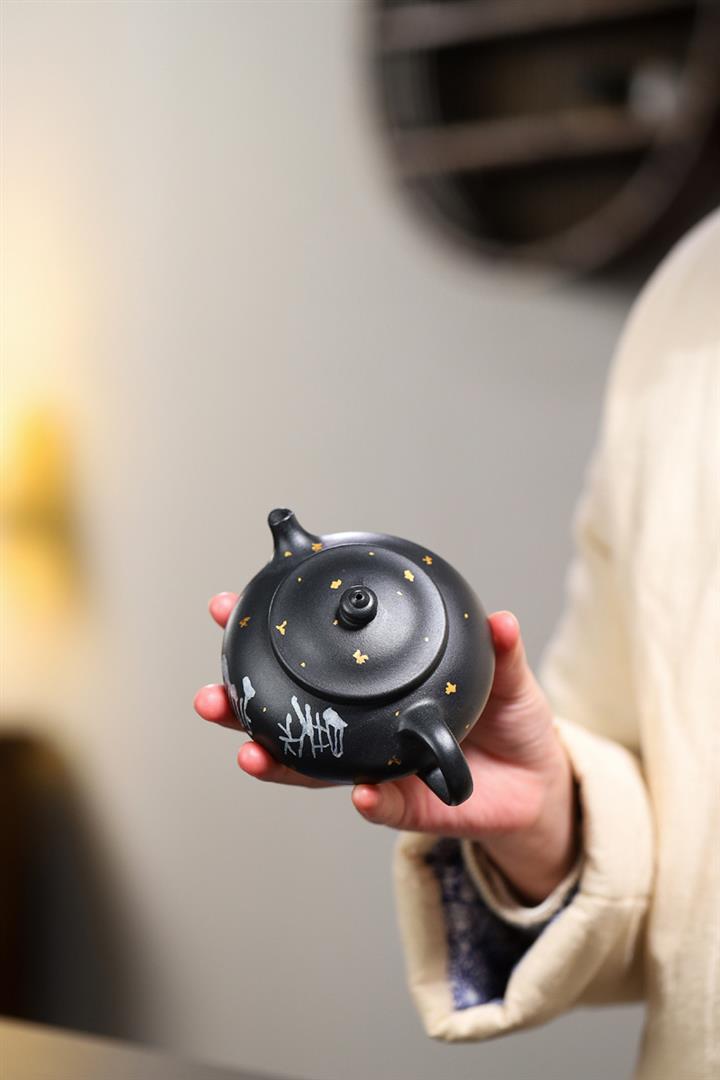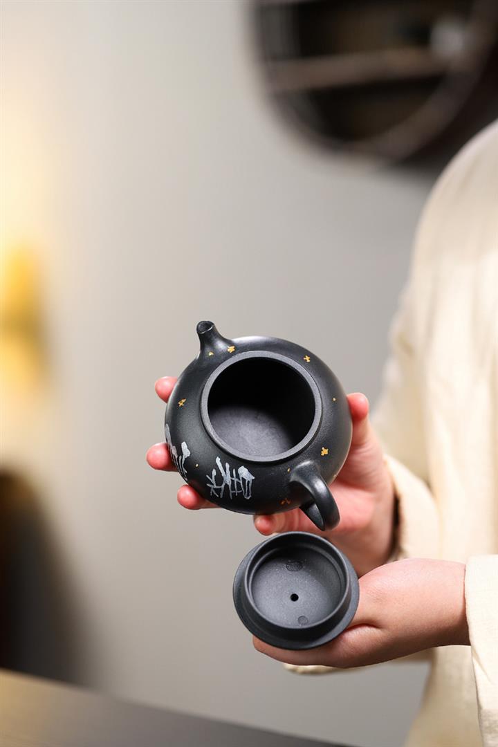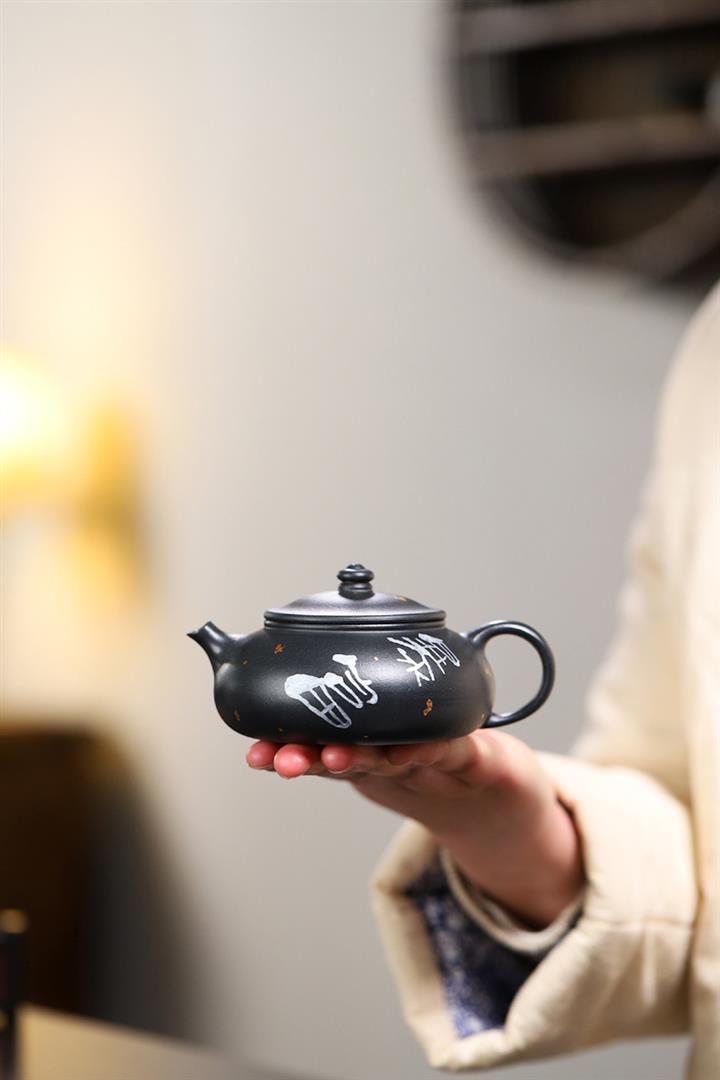 原礦烏金砂手工製作寒江茶壺POT6865