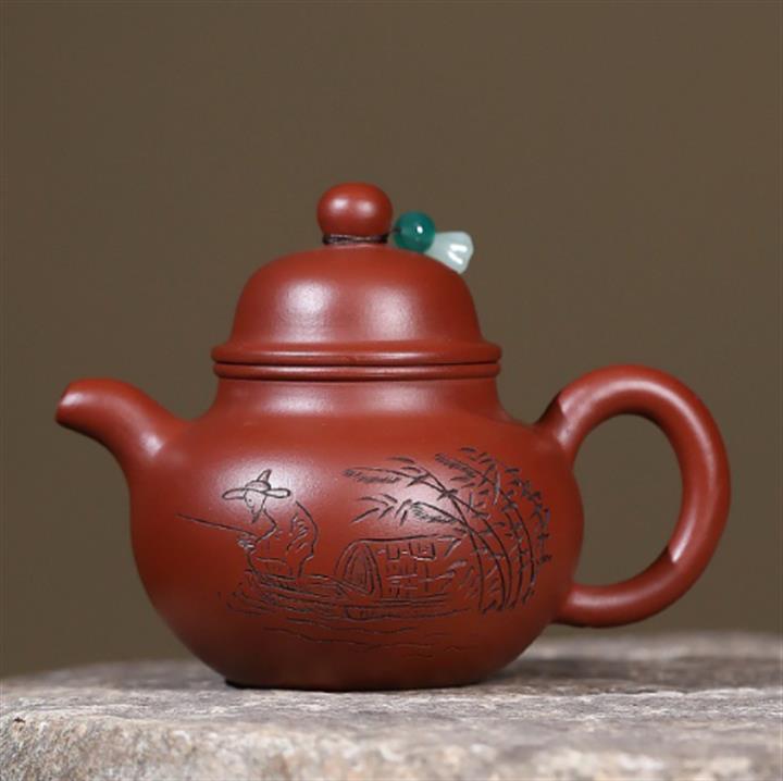 原礦大紅袍刻繪漁翁掇球壺POT6978