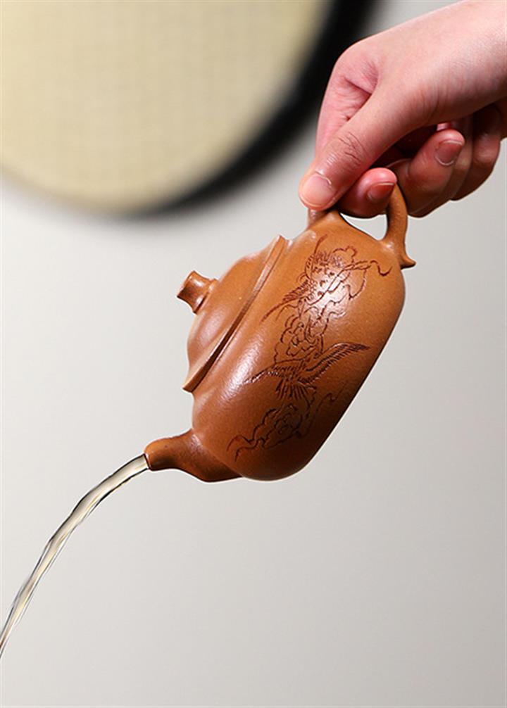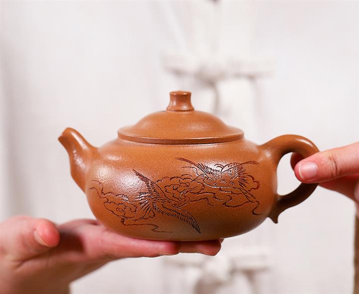 【簡介】此款壺形線條流暢,壺把,壺嘴,壺身壹氣呵成栩栩如生,是收藏把玩的好壺,泥料色澤古樸典雅,日久使用,漸露鋒芒,養成變化快,溫潤莊重,用其泡茶,使用的年代久,壺身就溫潤,泡出來的茶湯也就醇郁芳馨。