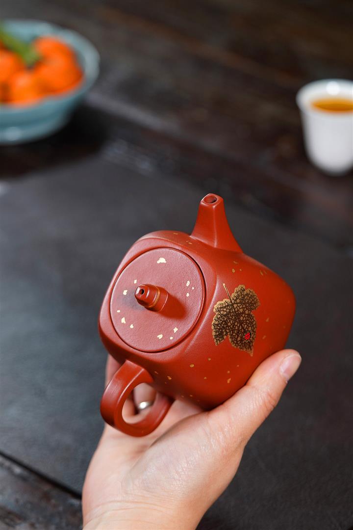 原礦大紅袍灑金四方漢鐸茶壺POT6893