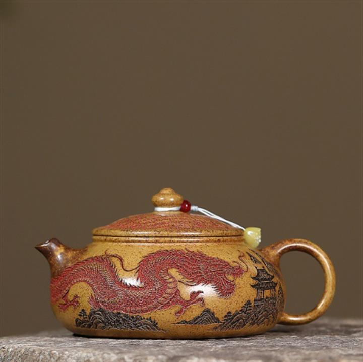 原礦龍骨金砂手工龍紋寒江茶壺POT6903