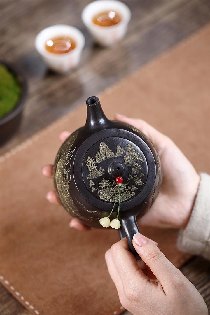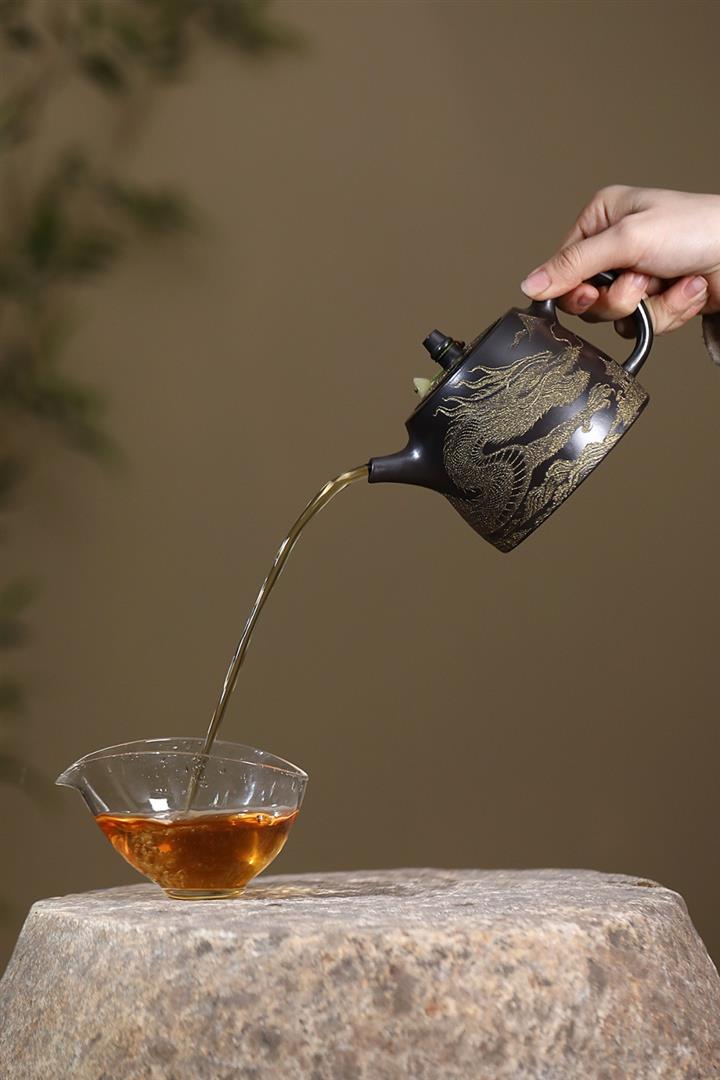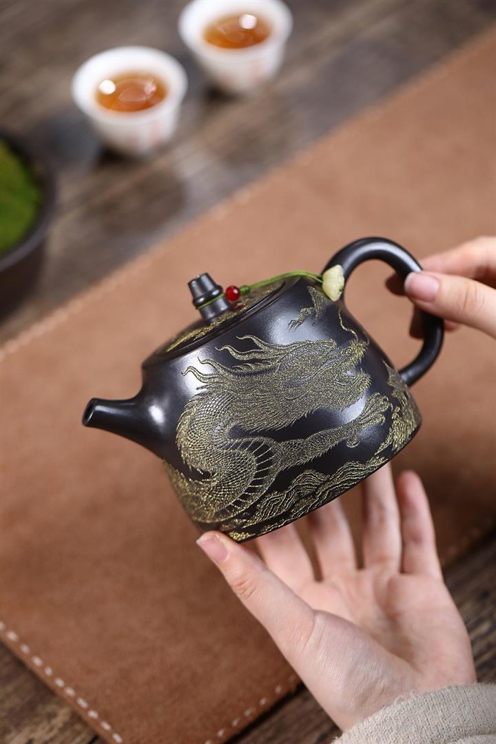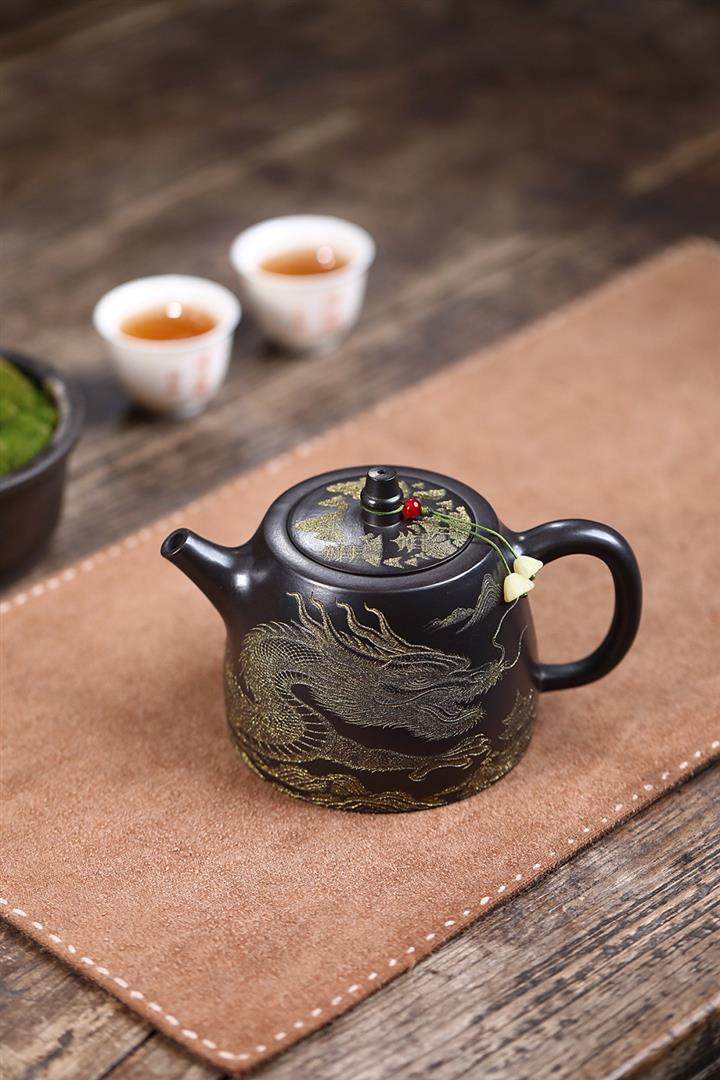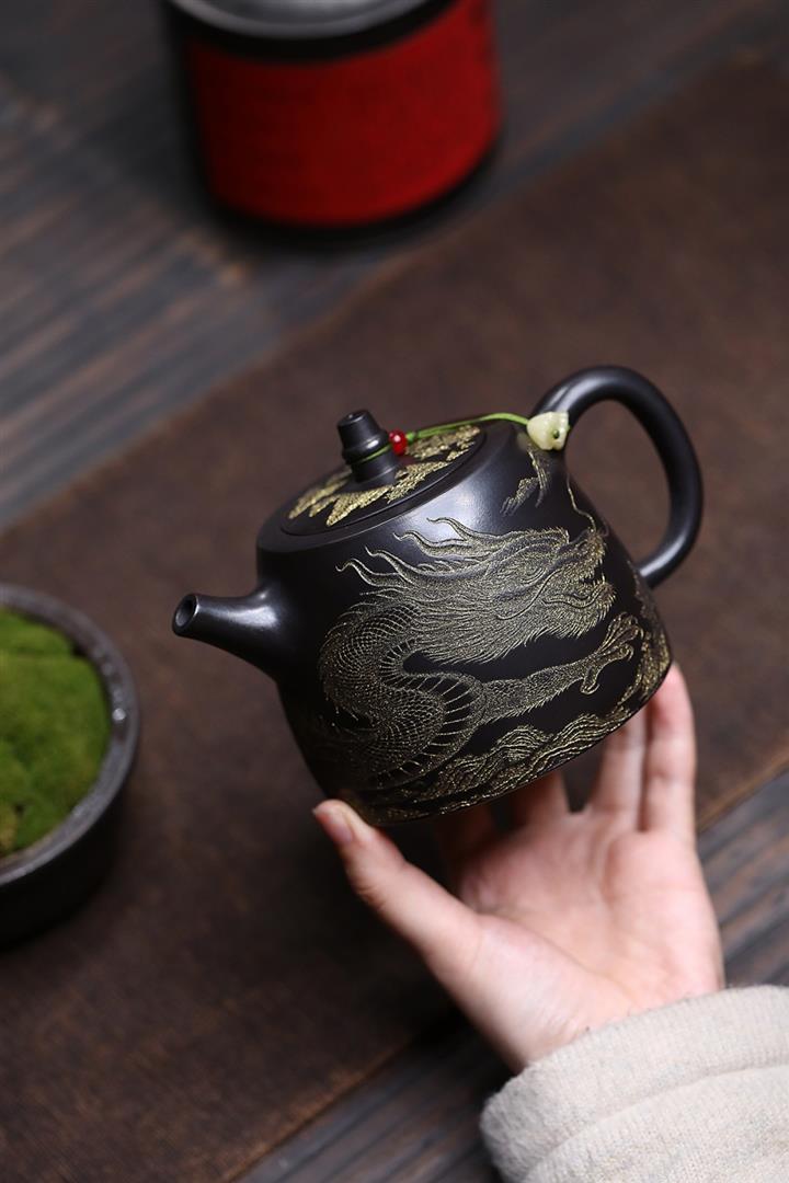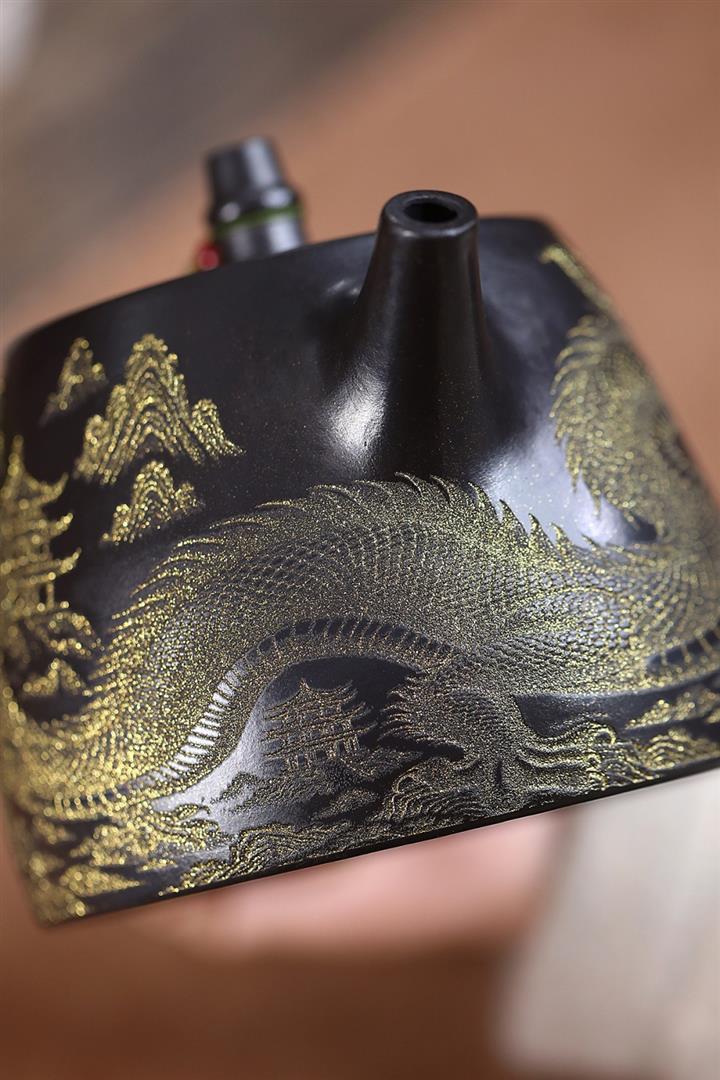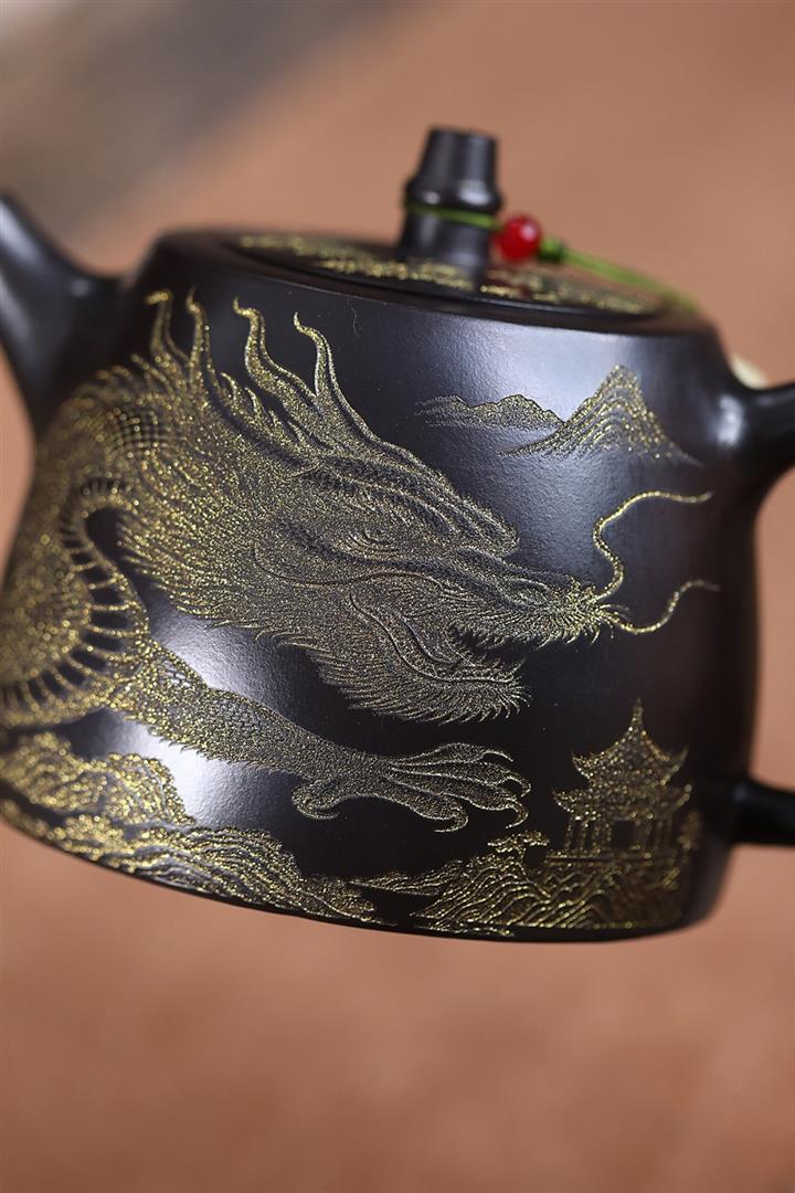 原礦龍骨金砂手工龍紋寒江茶壺POT6903