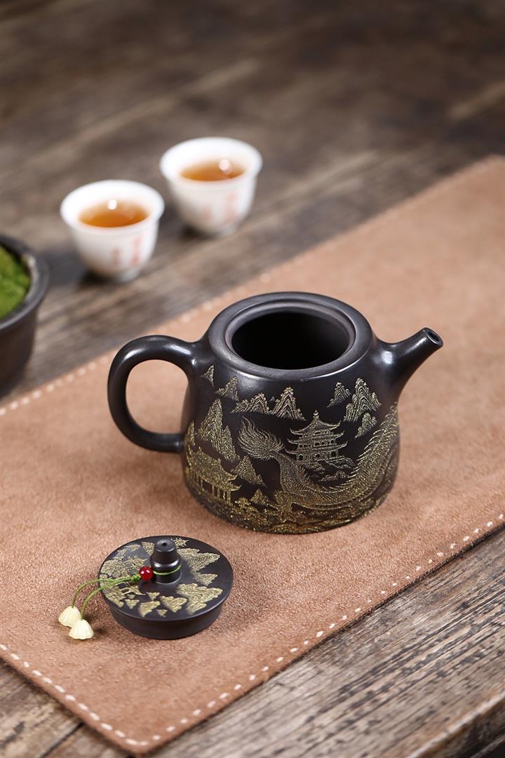 原礦石黃泥手工文人刻繪漢瓦茶壺POT6902