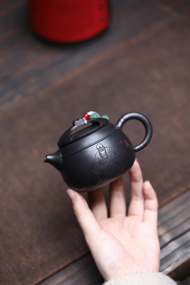 原礦龍骨金砂手工龍紋寒江茶壺POT6903