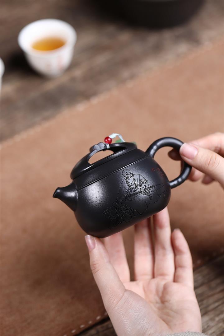 原礦石黃泥手工文人刻繪漢瓦茶壺POT6902