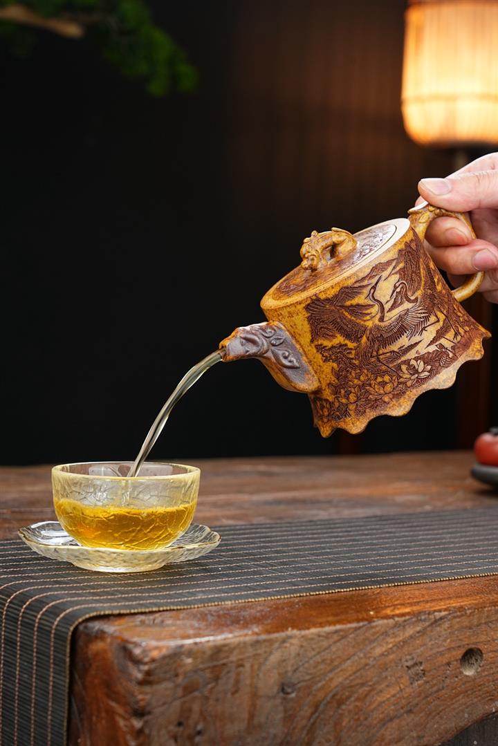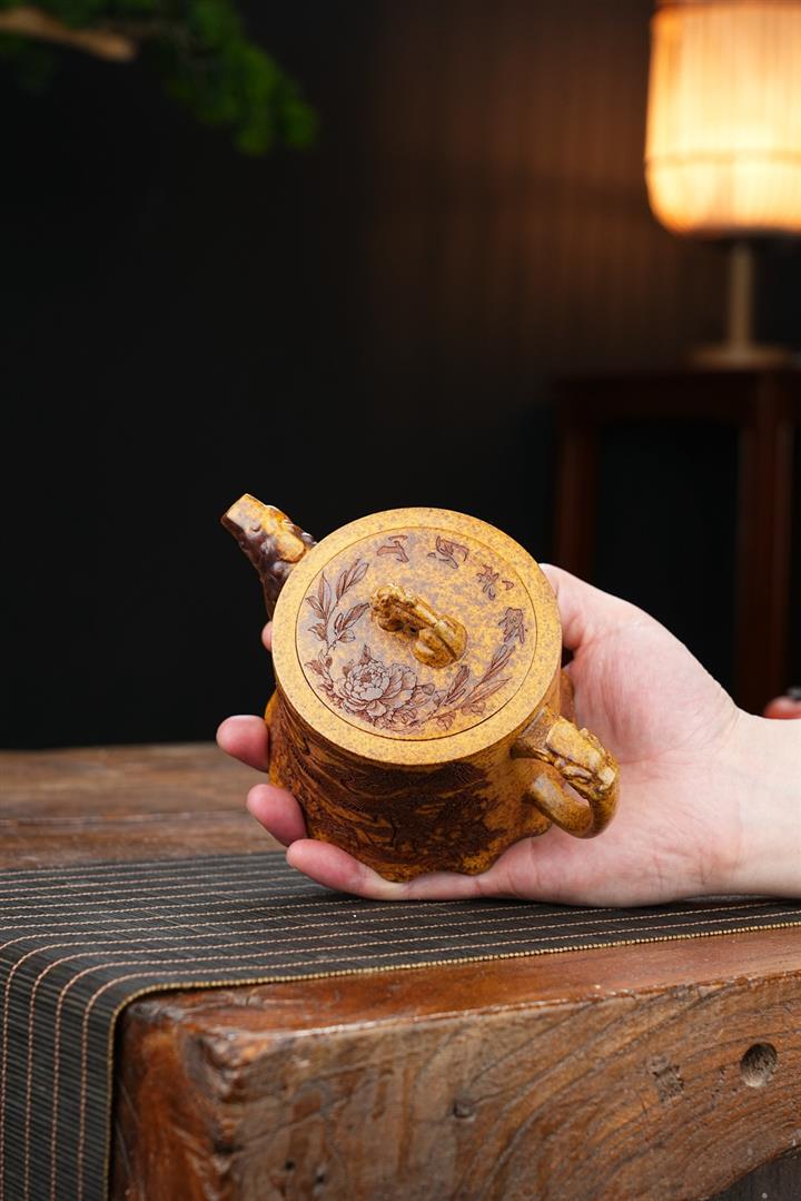 【泥料特點】砂土氣重,似淳實農民,日久使用,漸露鋒芒,養成變化,溫潤莊重。紫砂是壹種雙重氣孔結構的多孔性材質,氣孔微細,密度高。用紫砂壺沏茶,不失原味,且香不渙散,得茶之真香真味。紫砂使用越久,壺身色澤越發光亮照人,氣韻溫雅。紫砂壺長久使用器身會因撫摸擦拭,變得越發溫潤光澤!